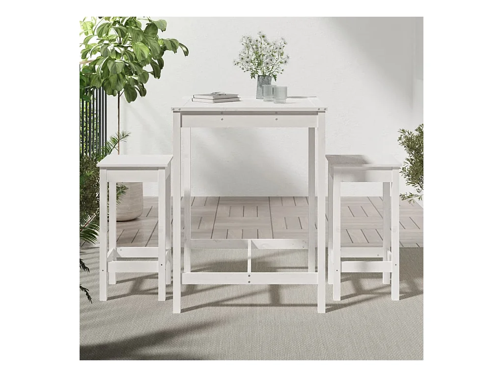 Ensemble de bar de jardin 3 pcs blanc bois de pin massif