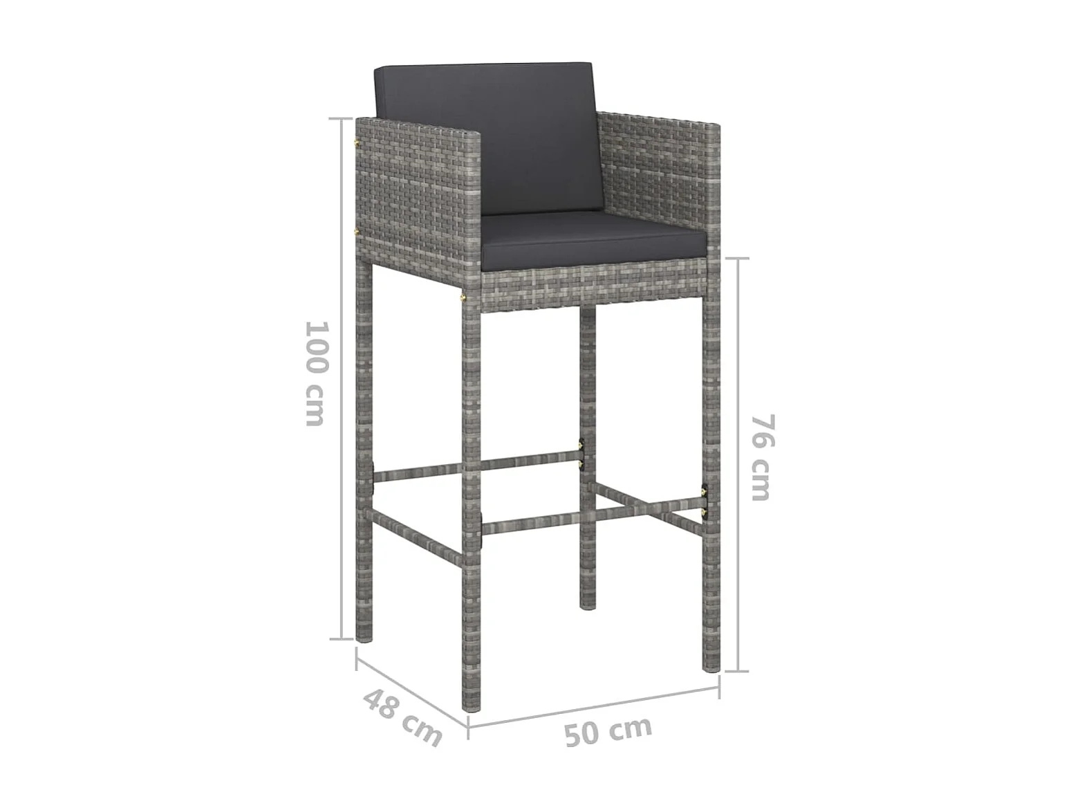 Ensemble de bar de jardin 3 pcs et coussins Résine tressée Gris 10