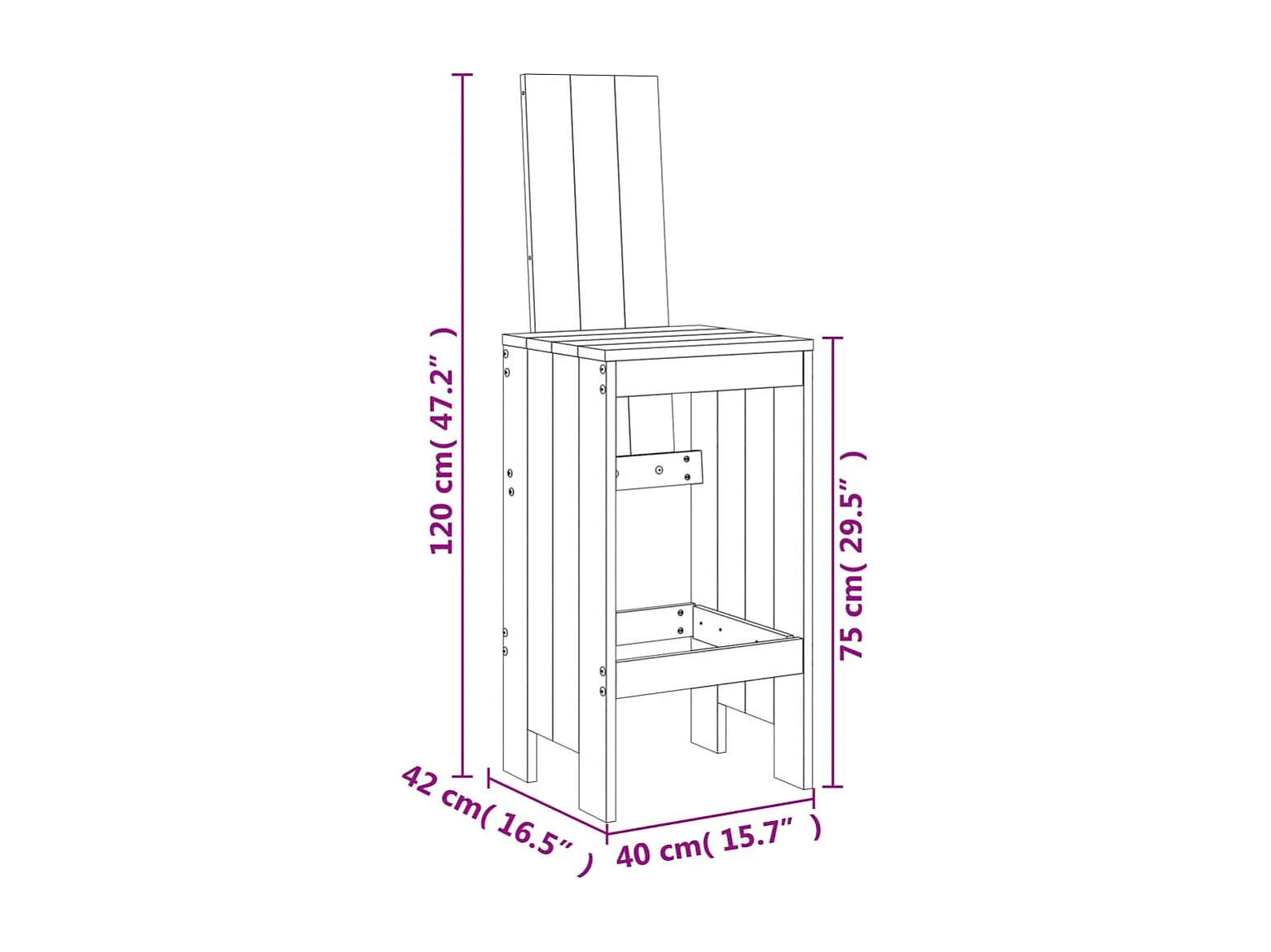 Ensemble de bar de jardin 3 pcs noir bois de pin massif