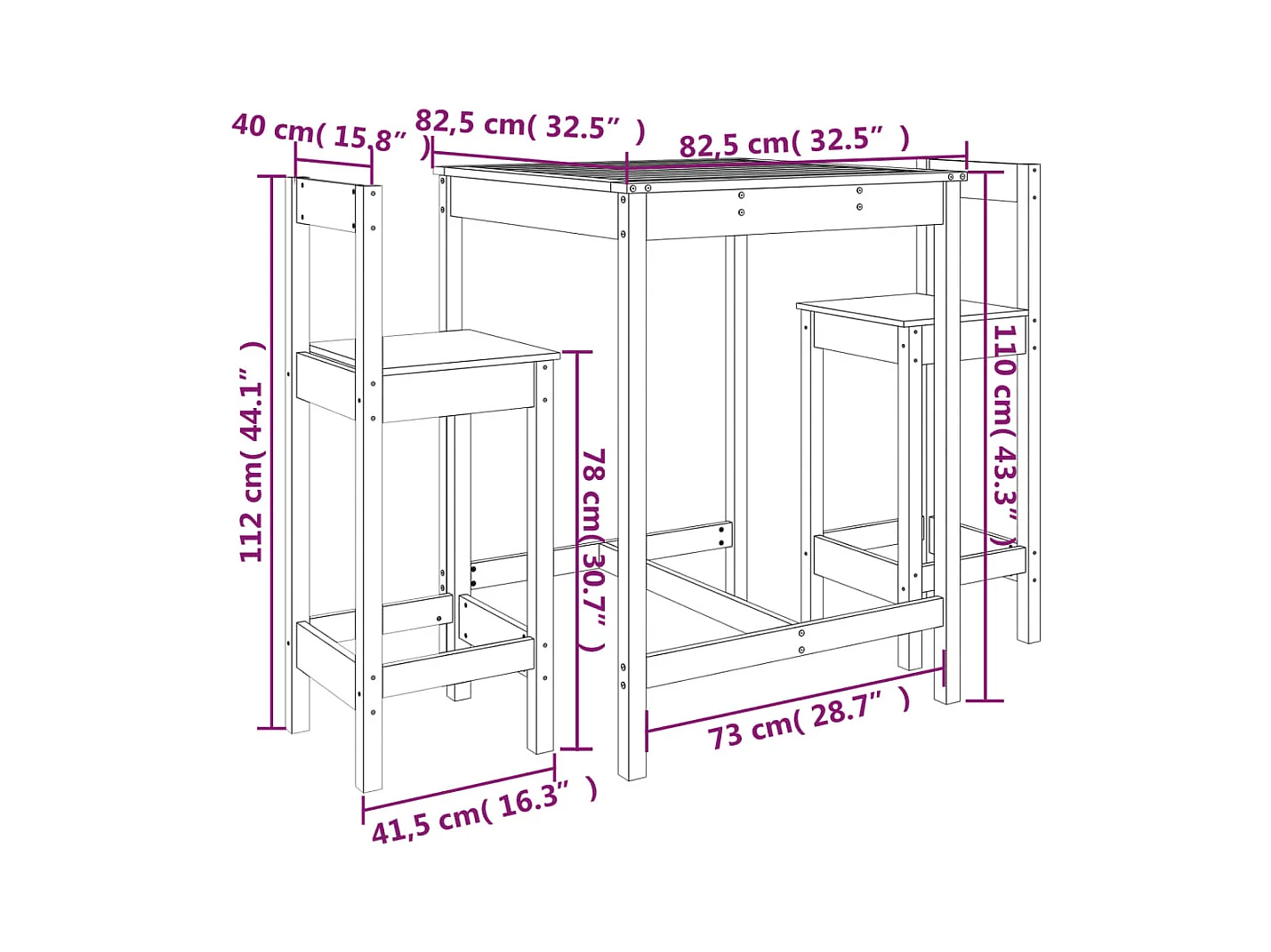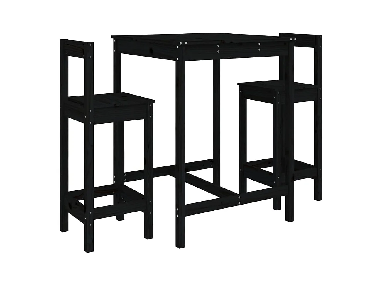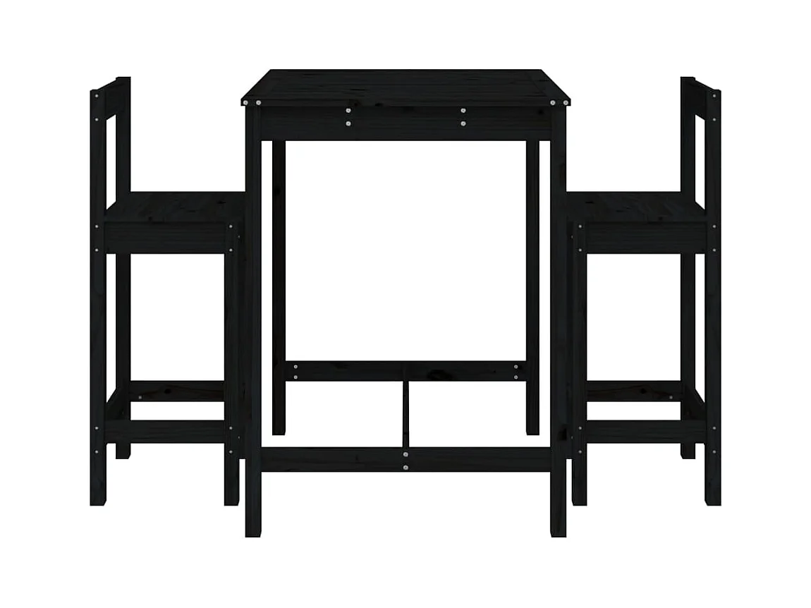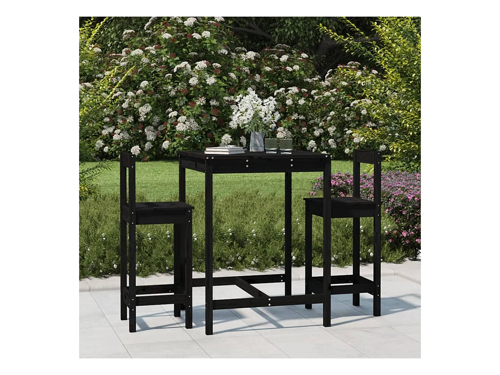 Ensemble de bar de jardin 3 pcs noir bois de pin massif