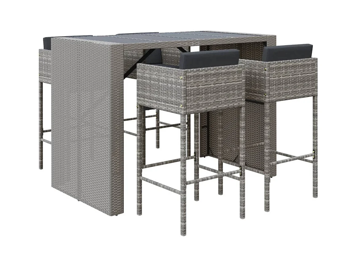 Ensemble de bar de jardin 5 pcs avec coussins gris poly rotin