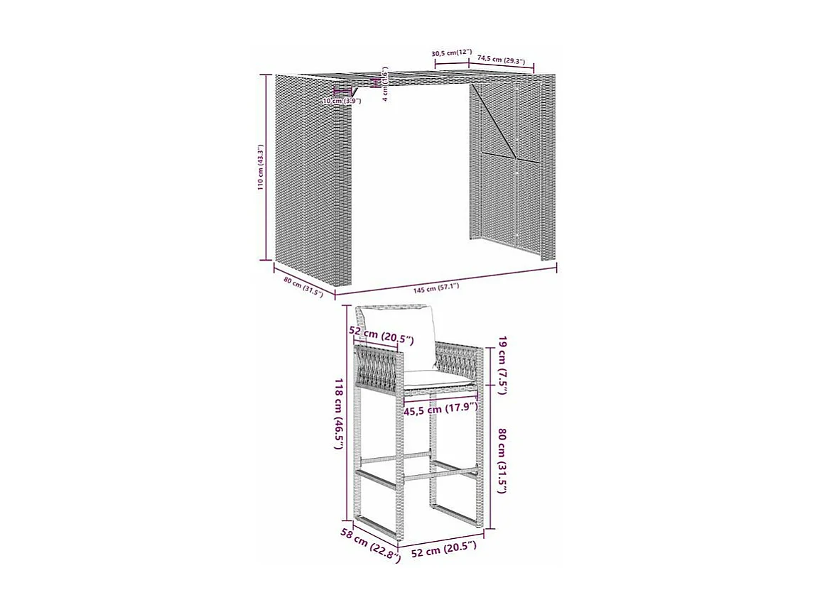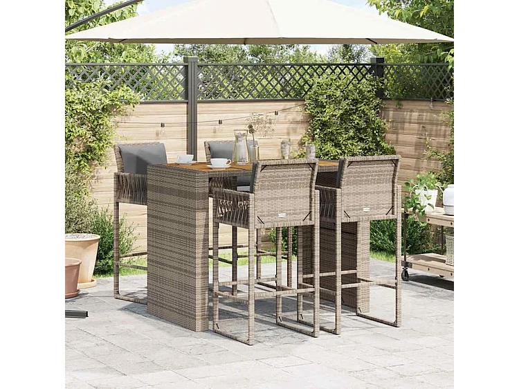 Ensemble de bar de jardin 5 pcs avec coussins gris poly rotin