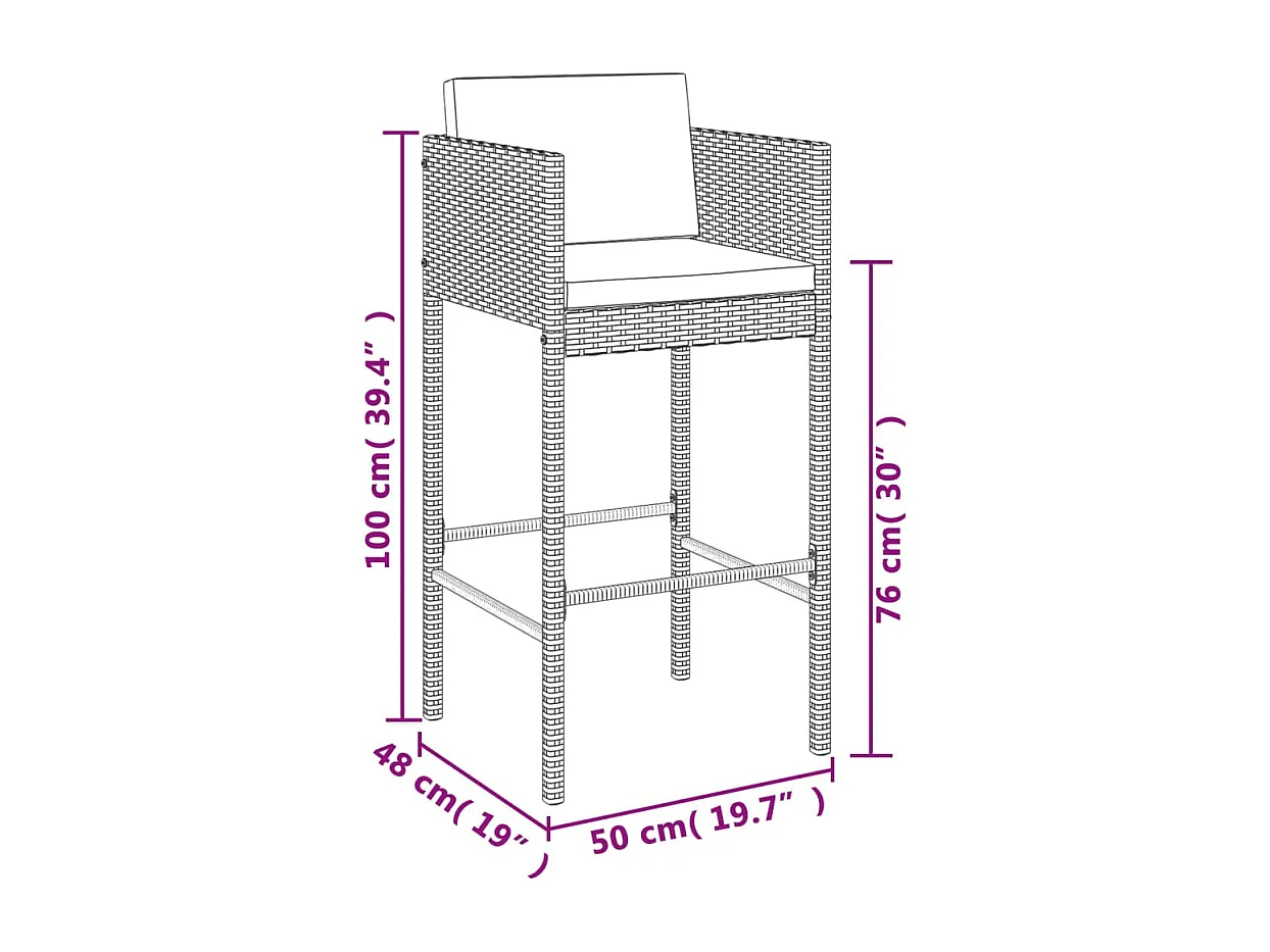 Ensemble de bar de jardin 5 pcs avec coussins noir poly rotin