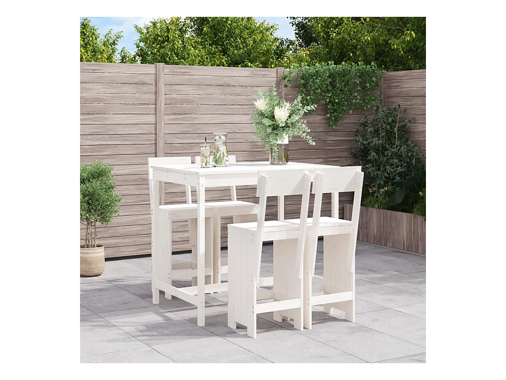 Ensemble de bar de jardin 5 pcs blanc bois massif de pin