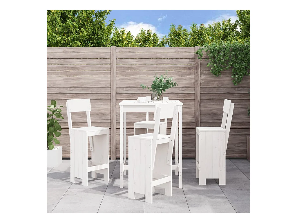 Ensemble de bar de jardin 5 pcs blanc bois massif de pin