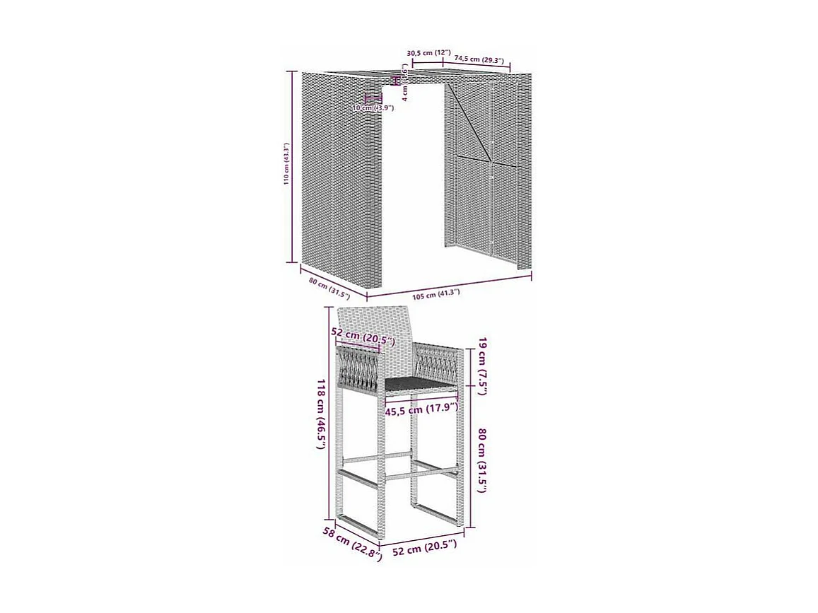 Ensemble de bar de jardin 5 pcs sans coussins gris poly rotin