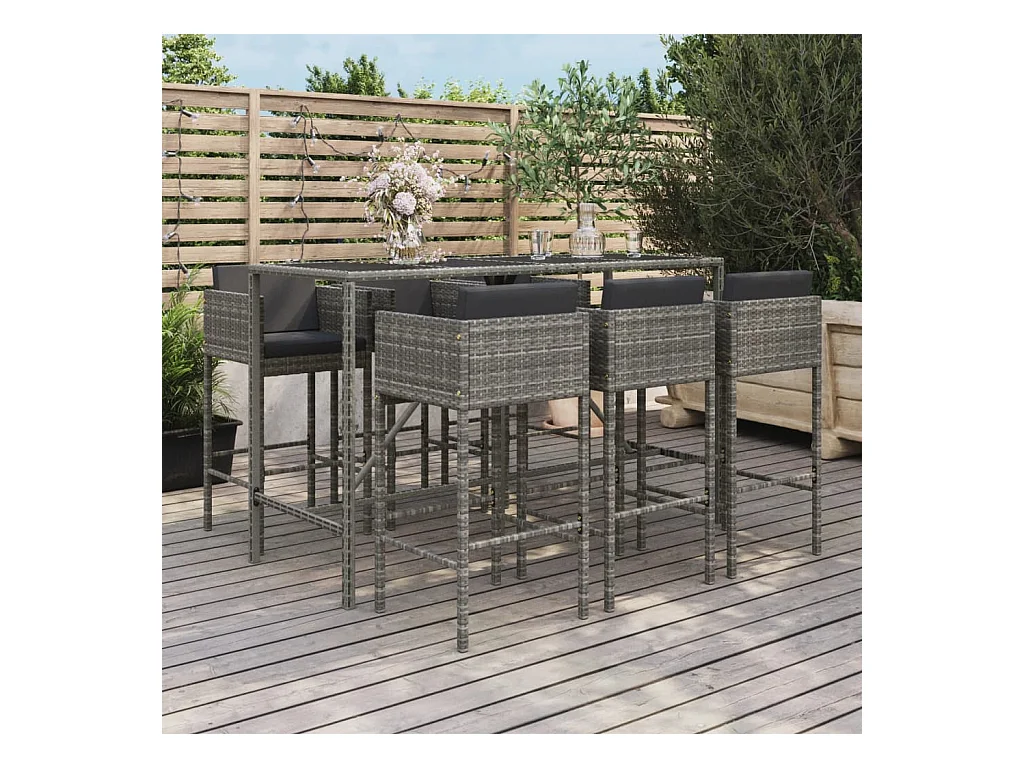 Ensemble de bar de jardin 7 pcs avec coussins gris poly rotin
