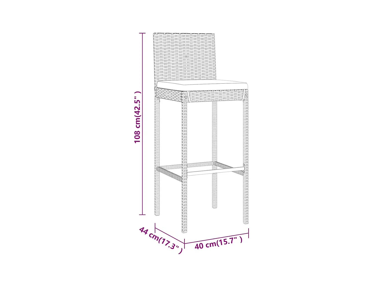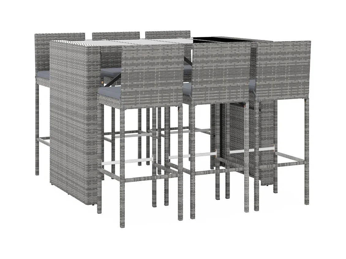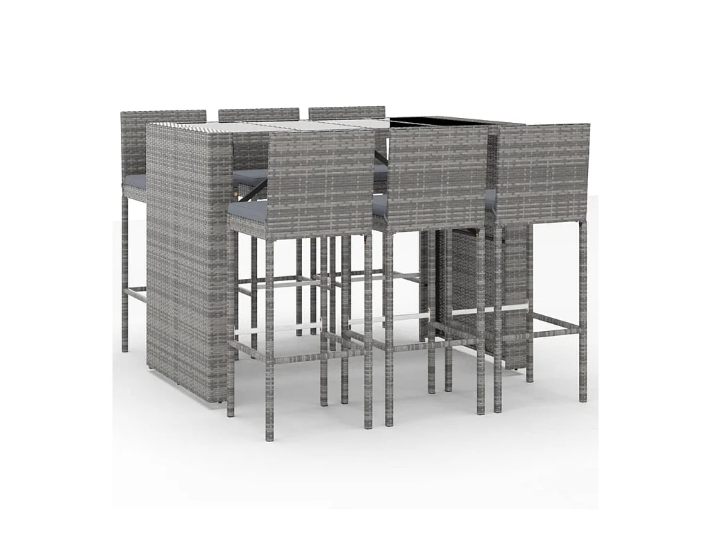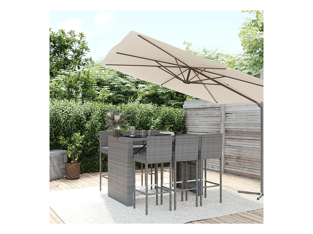 Ensemble de bar de jardin 7 pcs avec coussins gris poly rotin