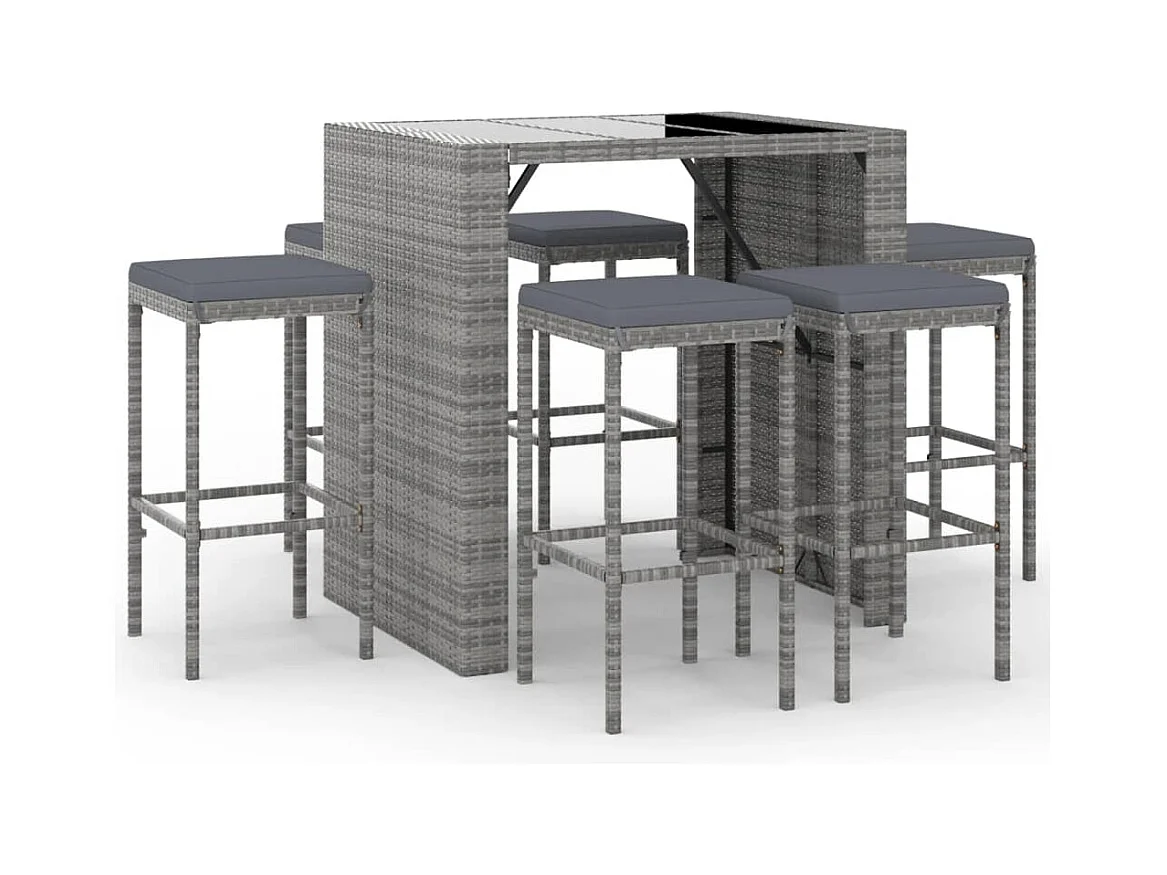 Ensemble de bar de jardin 7 pcs avec coussins gris poly rotin