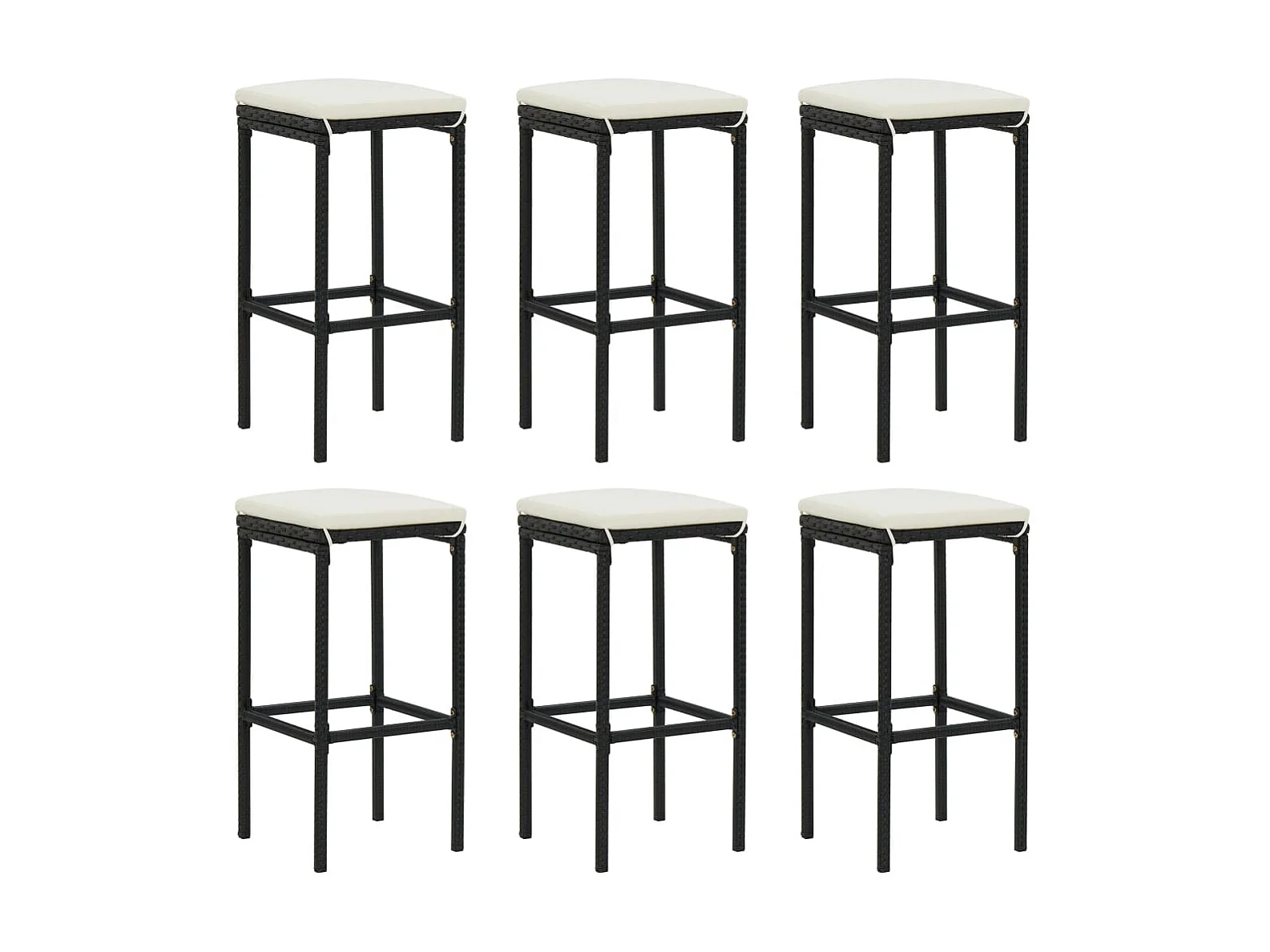 Ensemble de bar de jardin 7 pcs et coussins Résine tressée Noir 2
