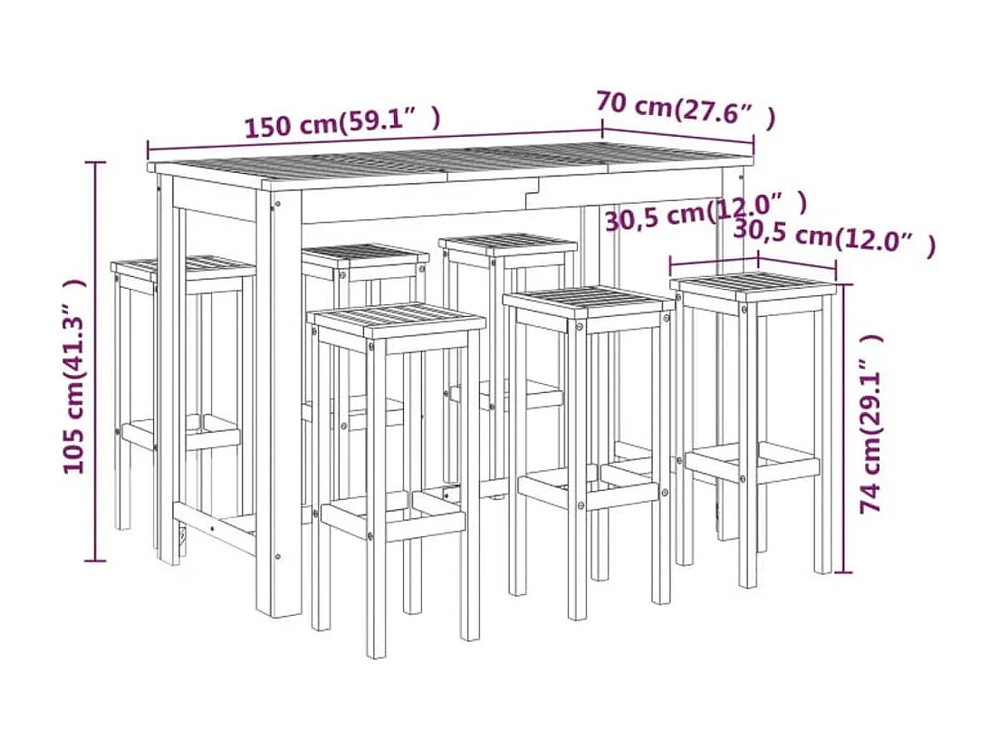 Ensemble de bar de jardin 7 pièces Bois d'acacia solide