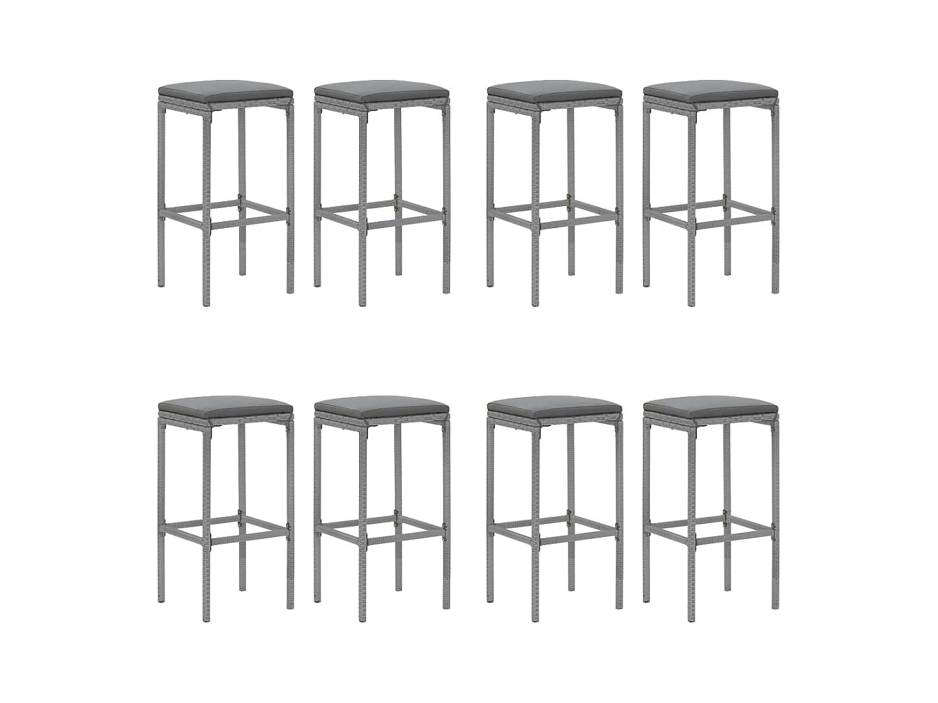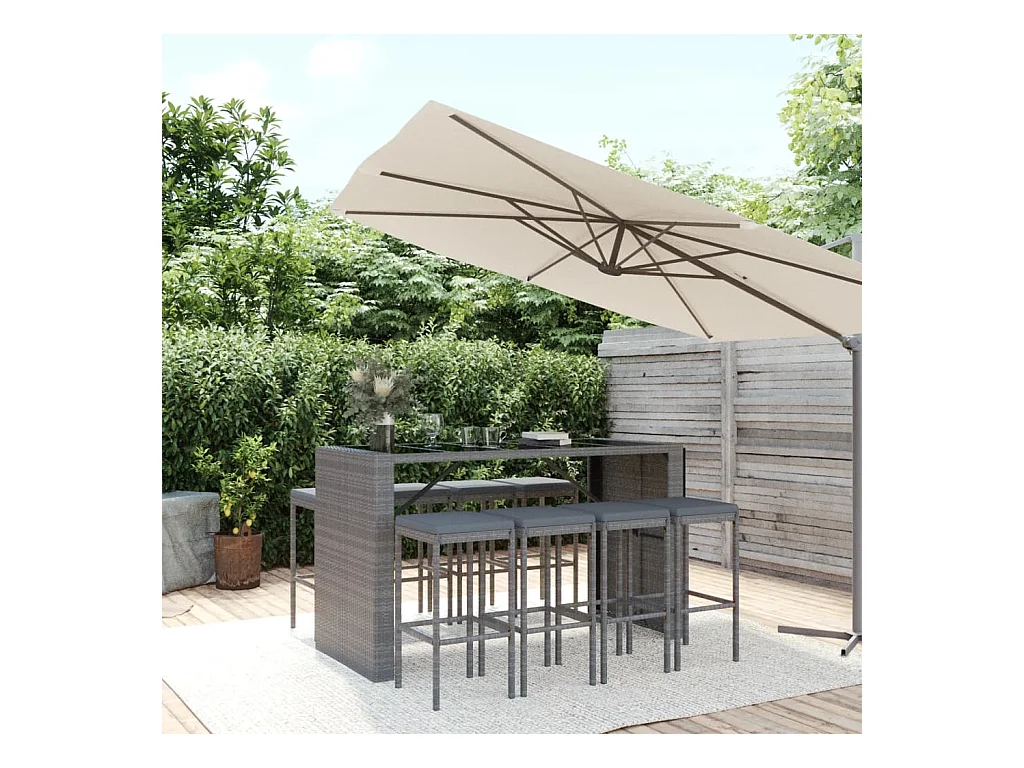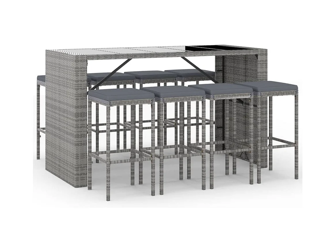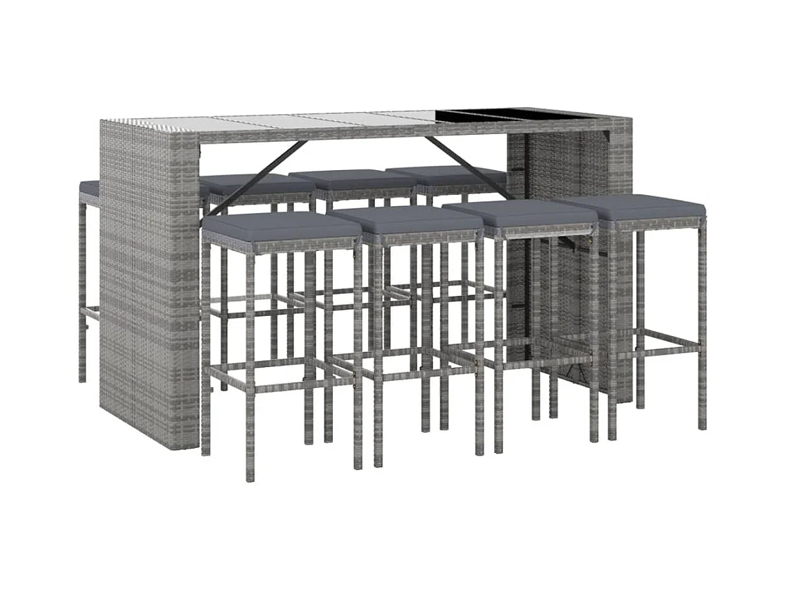 Ensemble de bar de jardin 9 pcs avec coussins gris poly rotin