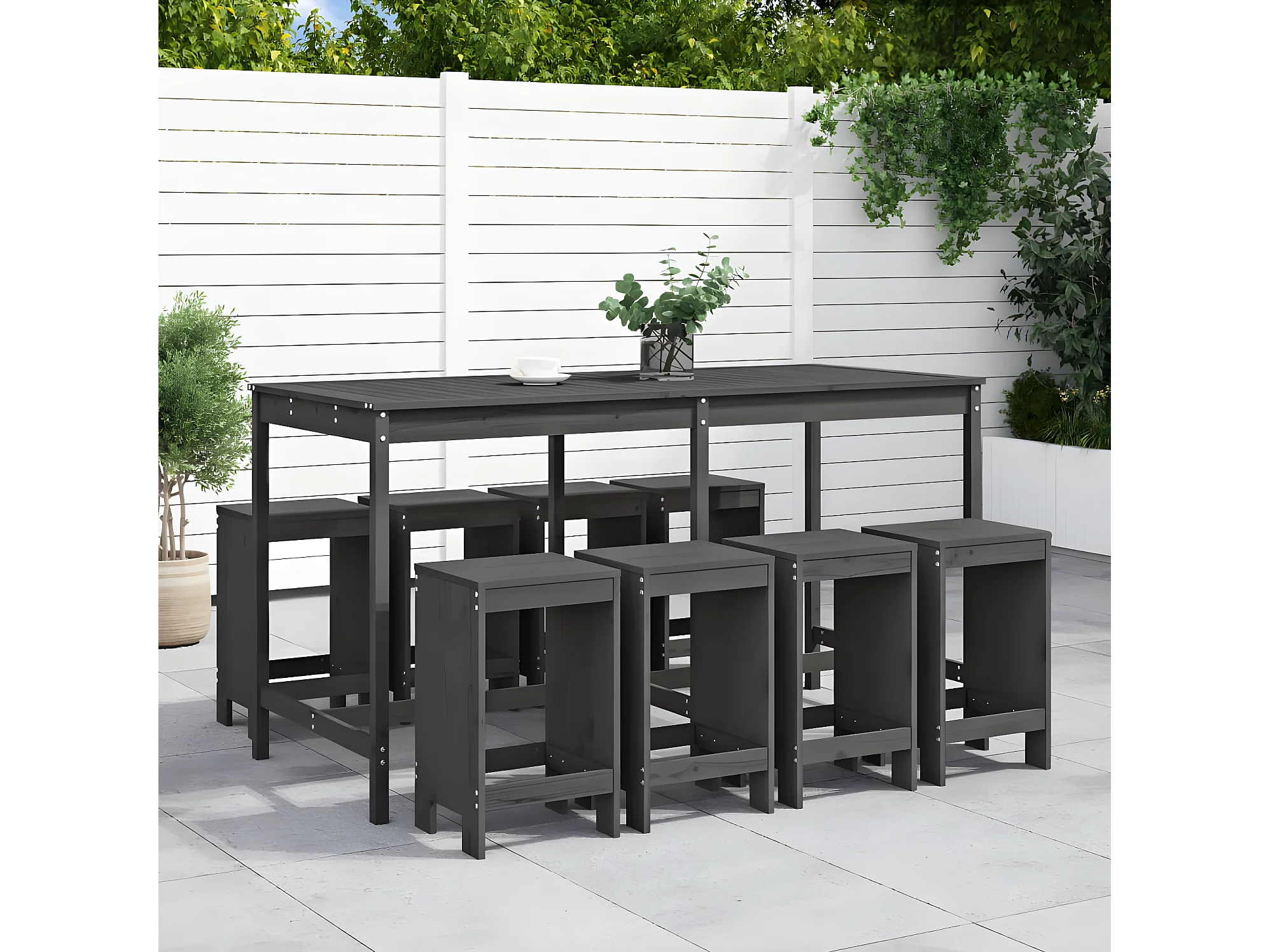 Ensemble de bar de jardin 9 pcs gris bois de pin massif