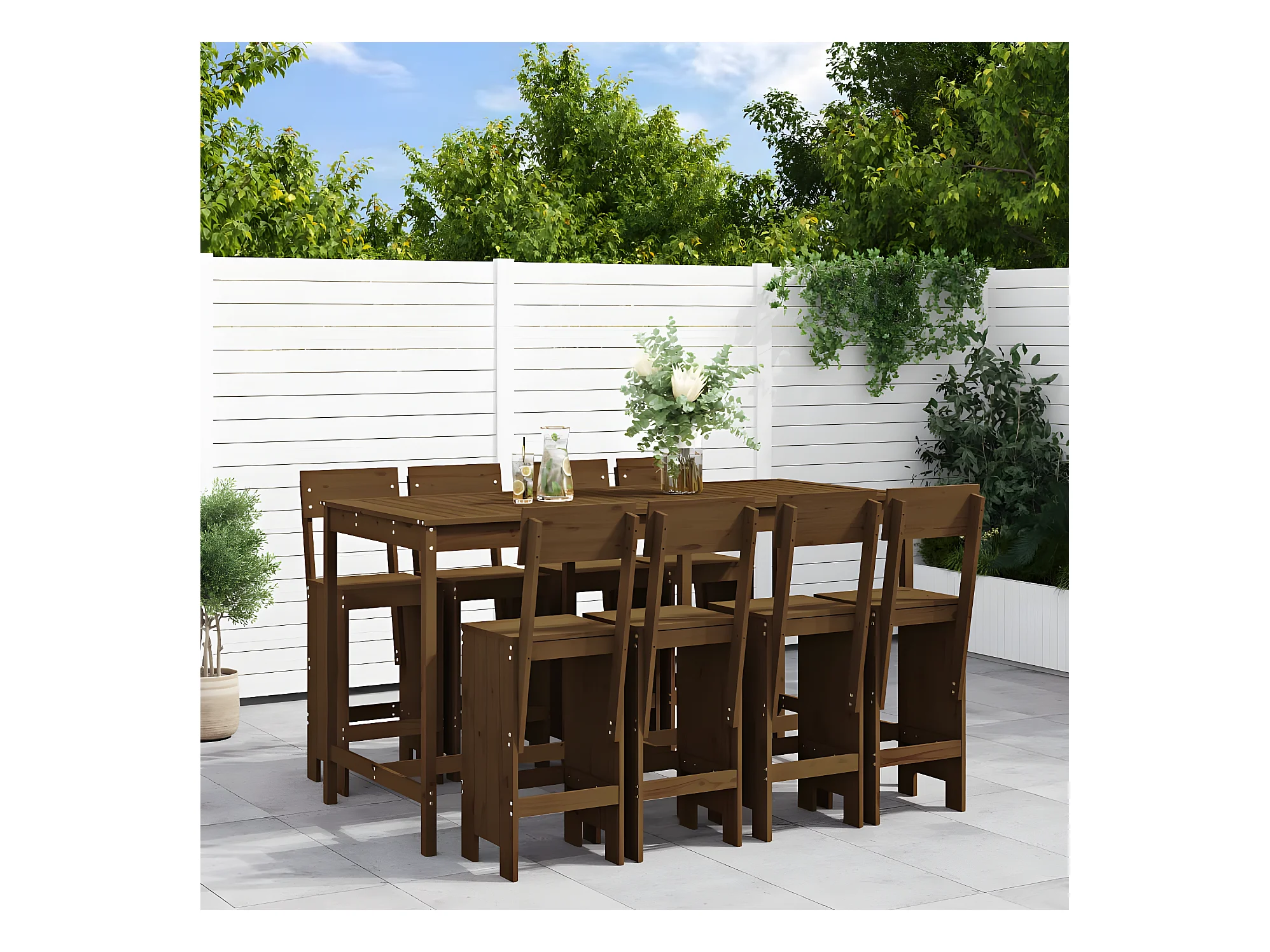 Ensemble de bar de jardin 9 pcs marron miel bois de pin massif
