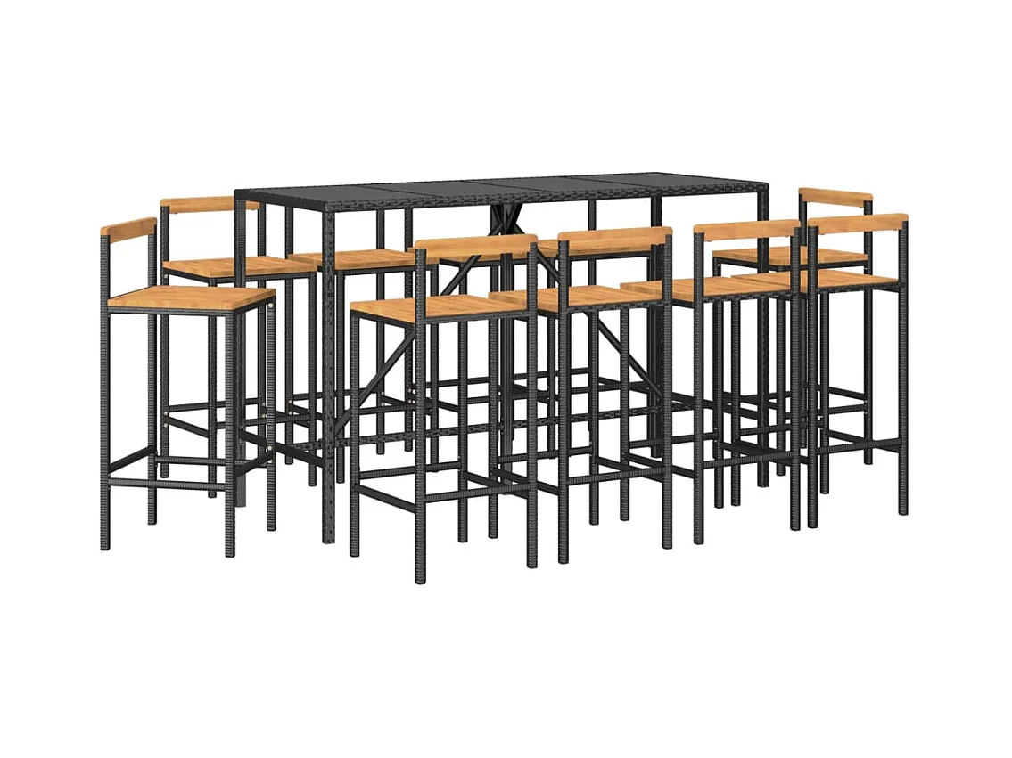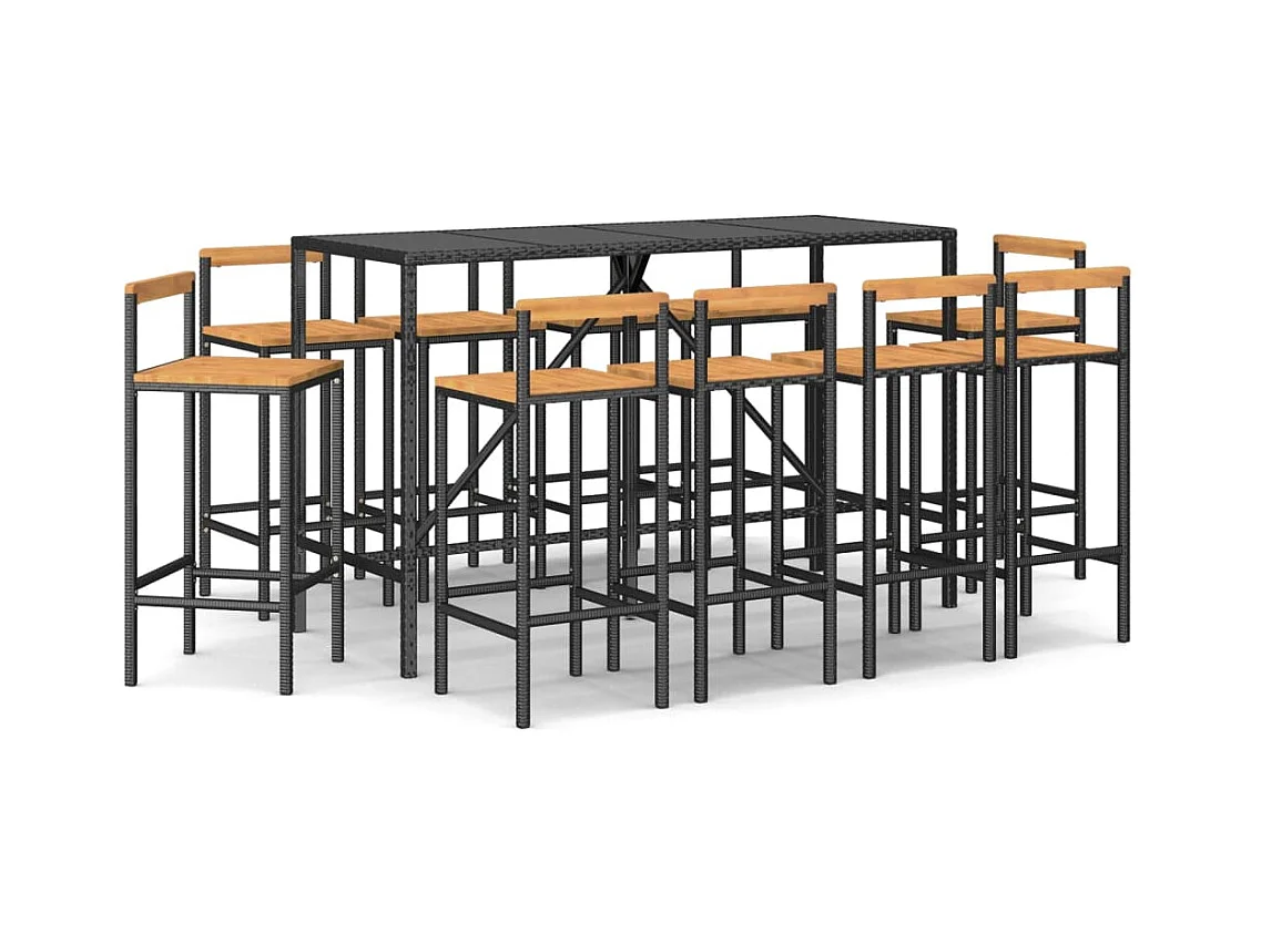 Ensemble de bar jardin 11pcs noir poly rotin-bois massif acacia