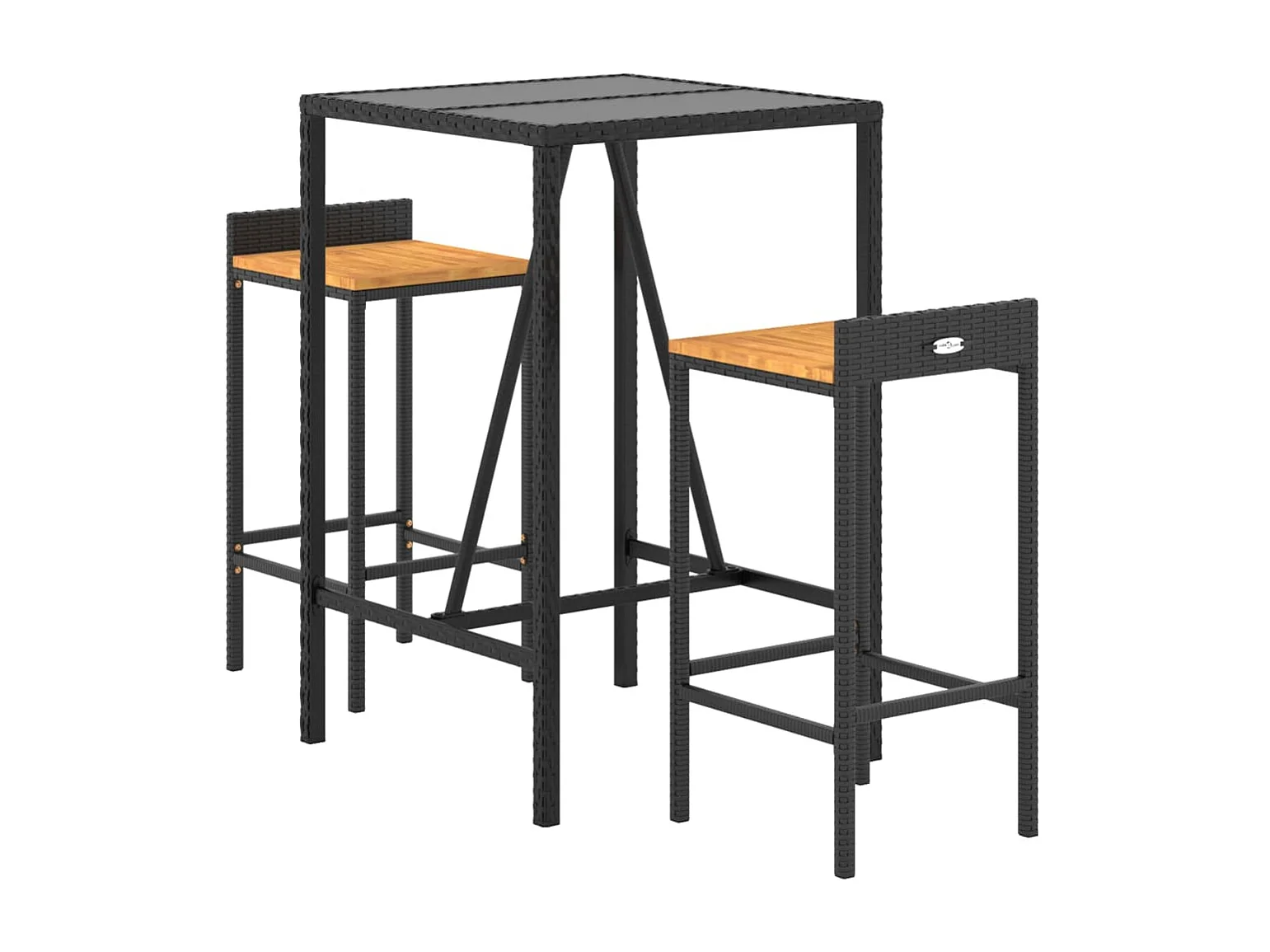 Ensemble de bar jardin 3 pcs noir poly rotin/bois massif acacia
