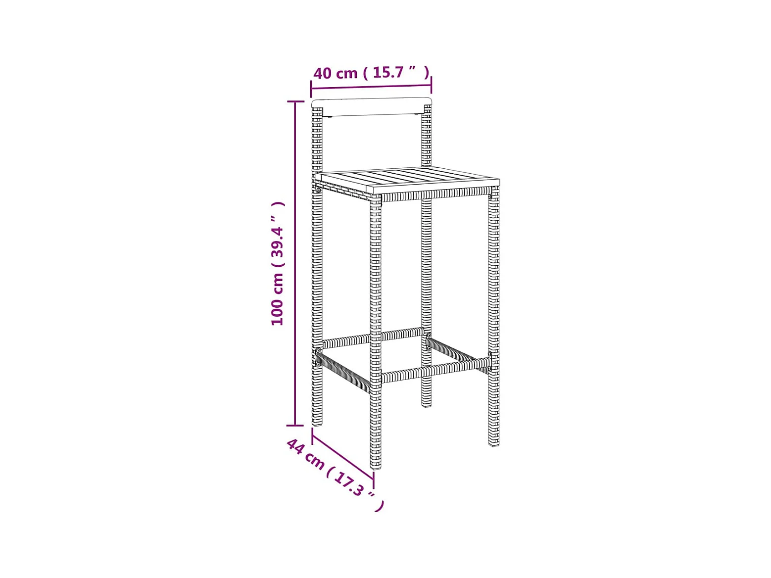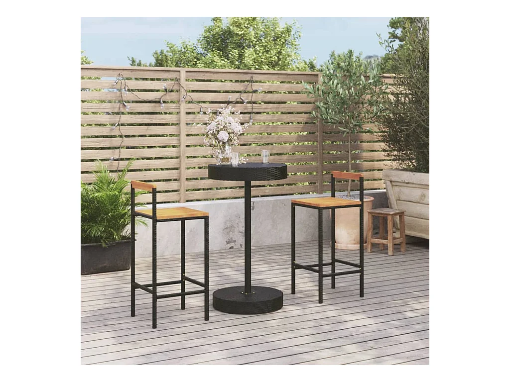Ensemble de bar jardin 3 pcs noir poly rotin-bois massif acacia
