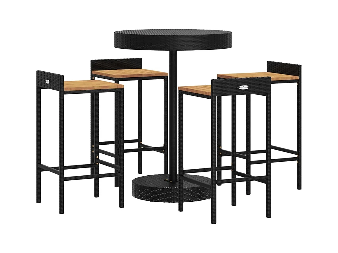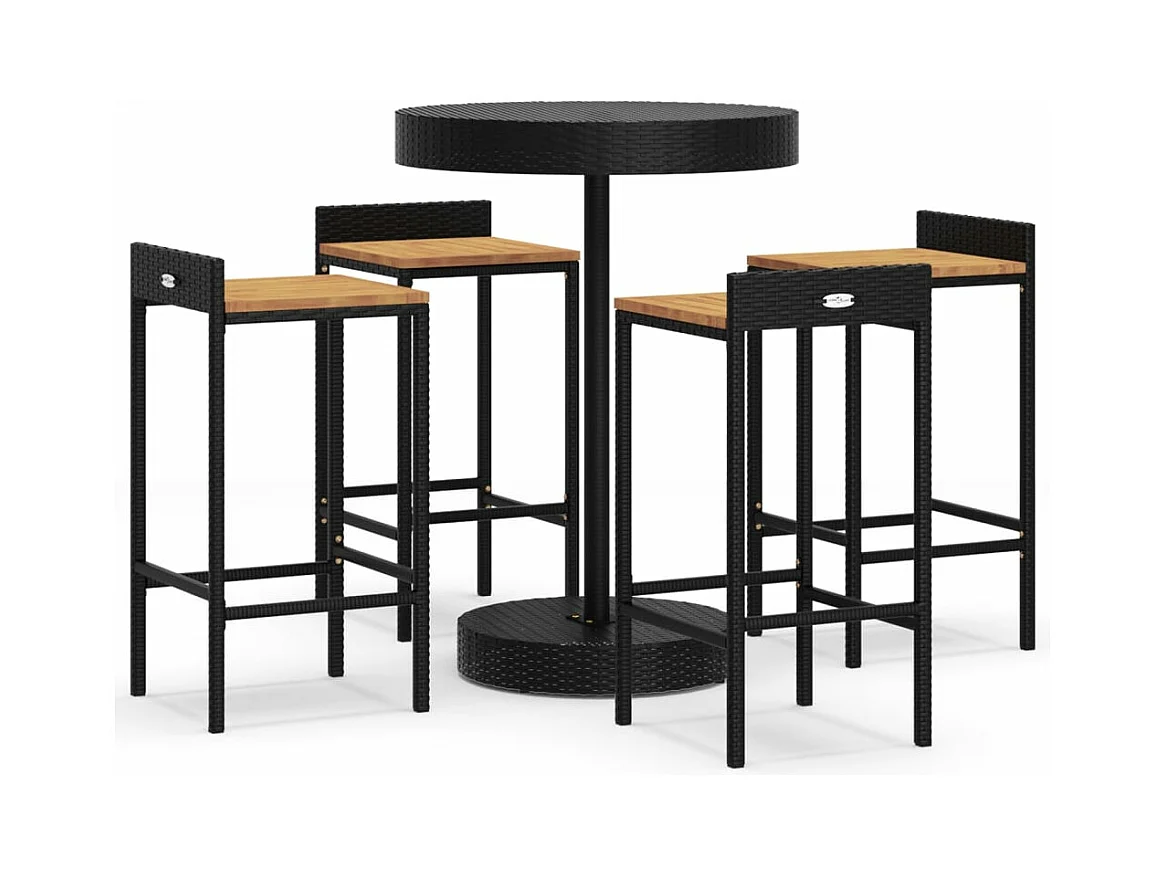 Ensemble de bar jardin 5 pcs noir poly rotin-bois massif acacia