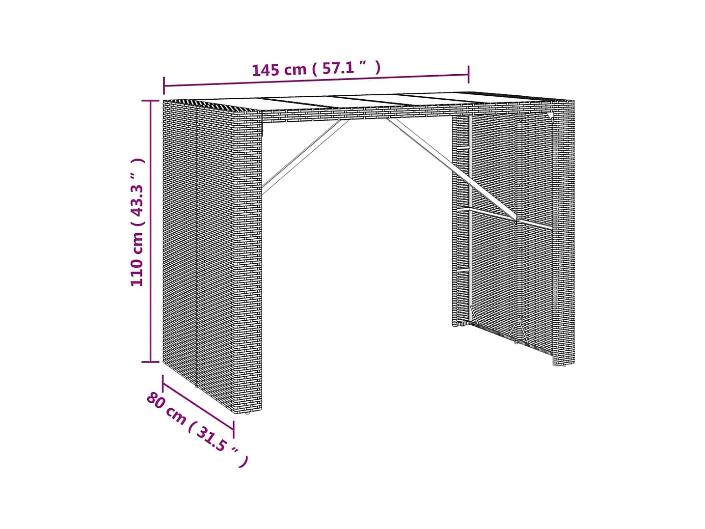 Ensemble de bar jardin 7 pcs noir poly rotin-bois massif acacia