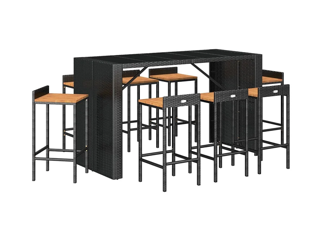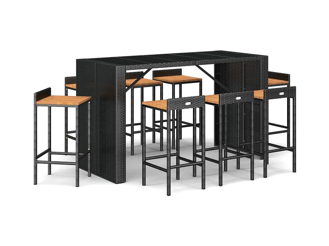 Ensemble de bar jardin 9 pcs noir poly rotin-bois massif acacia