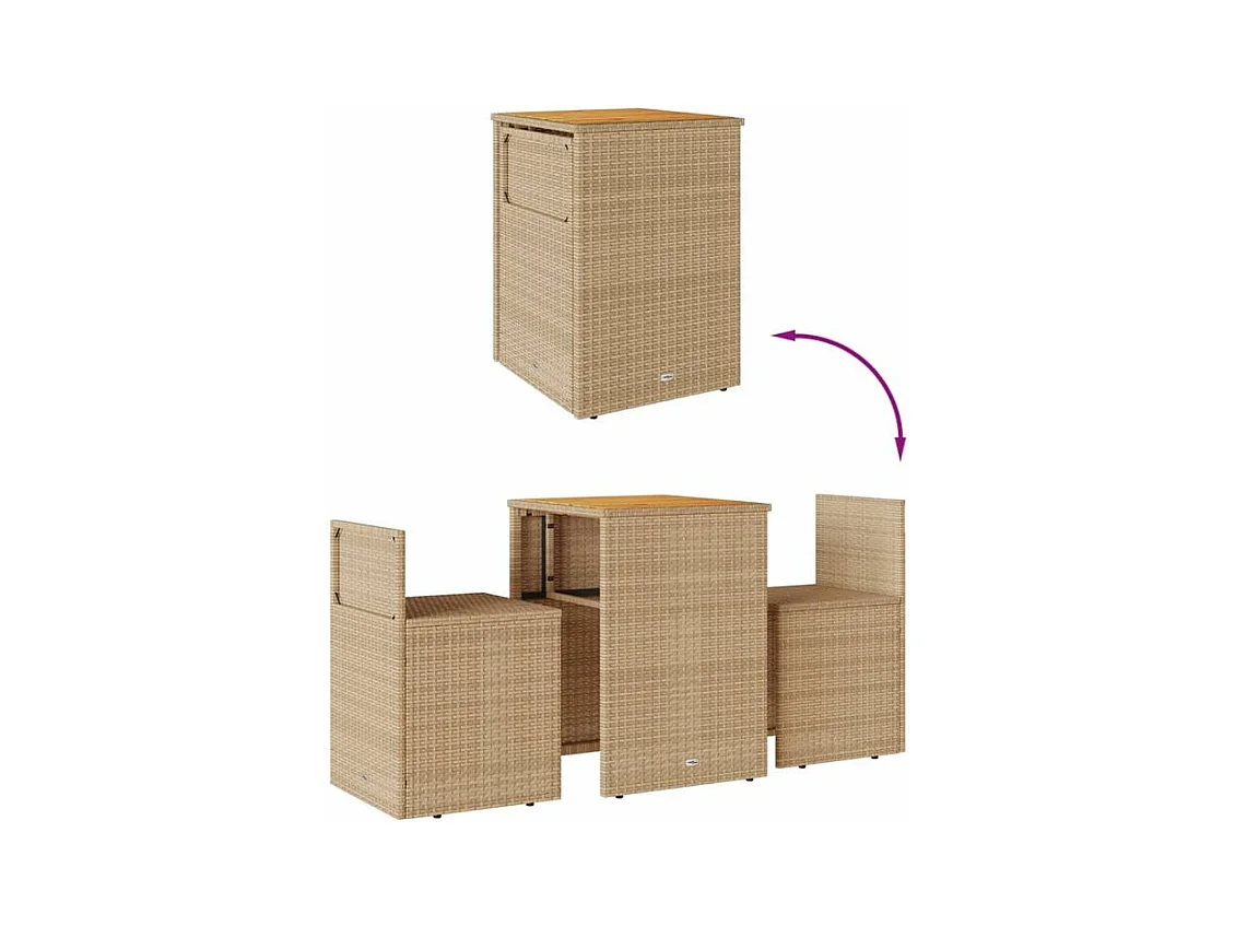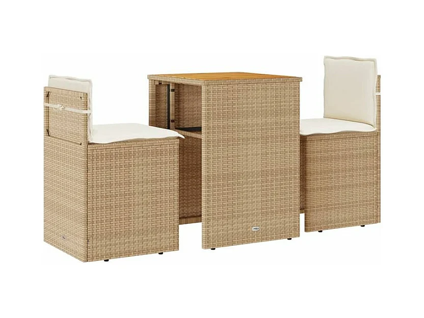 Ensemble de bistro 3 pcs avec coussins beige résine tressée