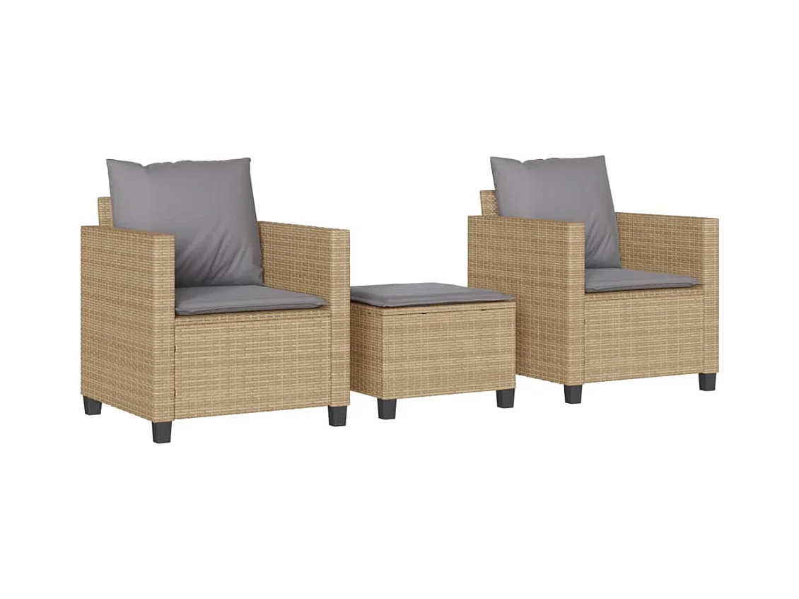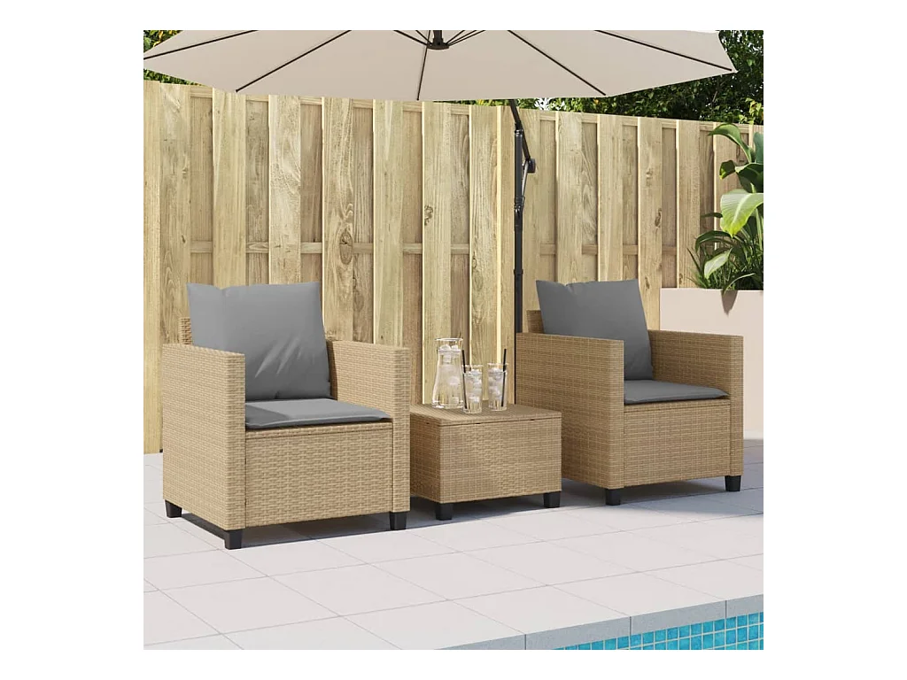 Ensemble de bistro 3 pcs avec coussins beige résine tressée FR29199
