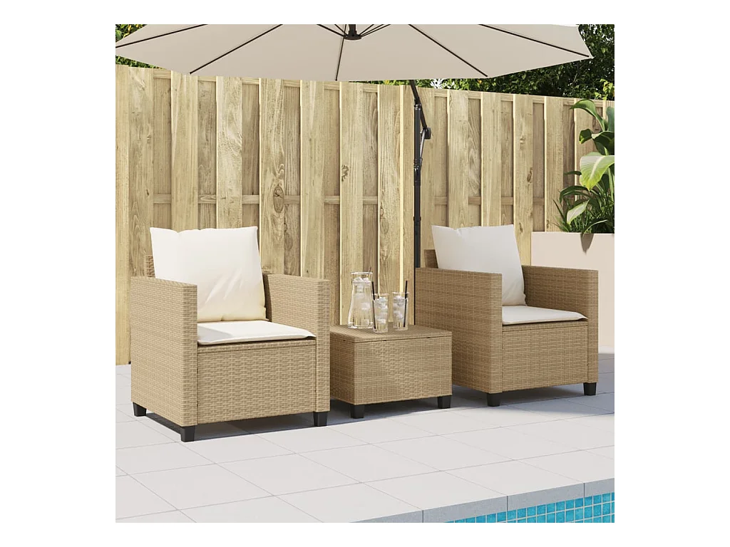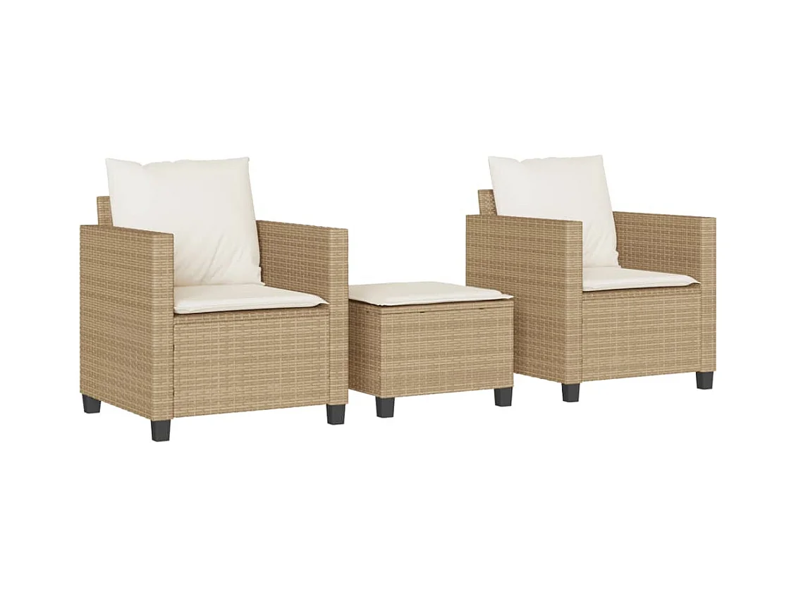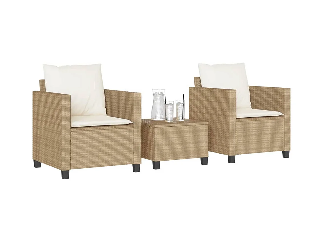 Ensemble de bistro 3 pcs avec coussins beige résine tressée FR35857
