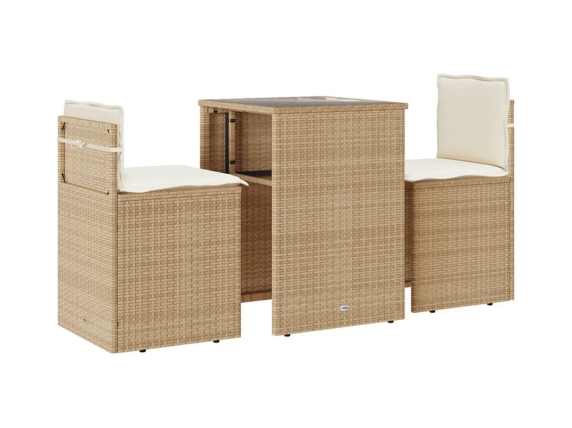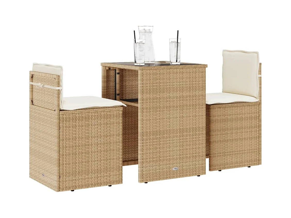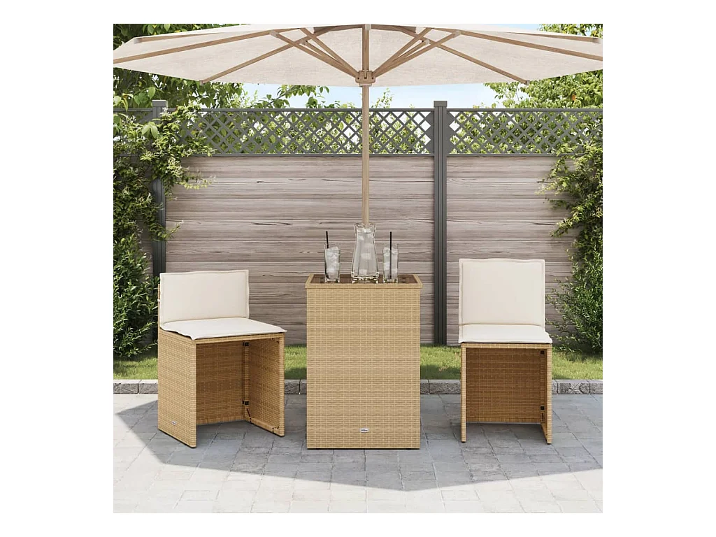 Ensemble de bistro 3 pcs avec coussins beige résine tressée FR47873
