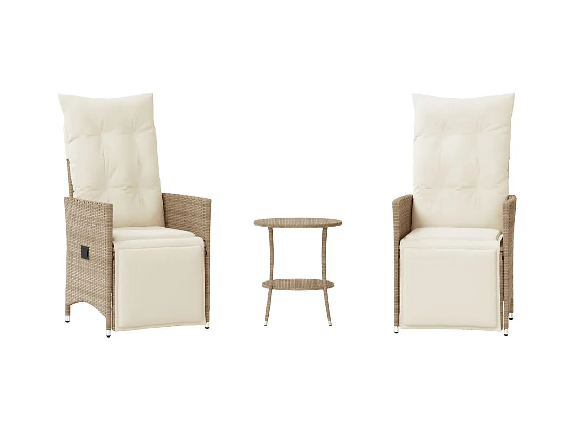 Ensemble de bistro 3 pcs avec coussins beige résine tressée FR54942