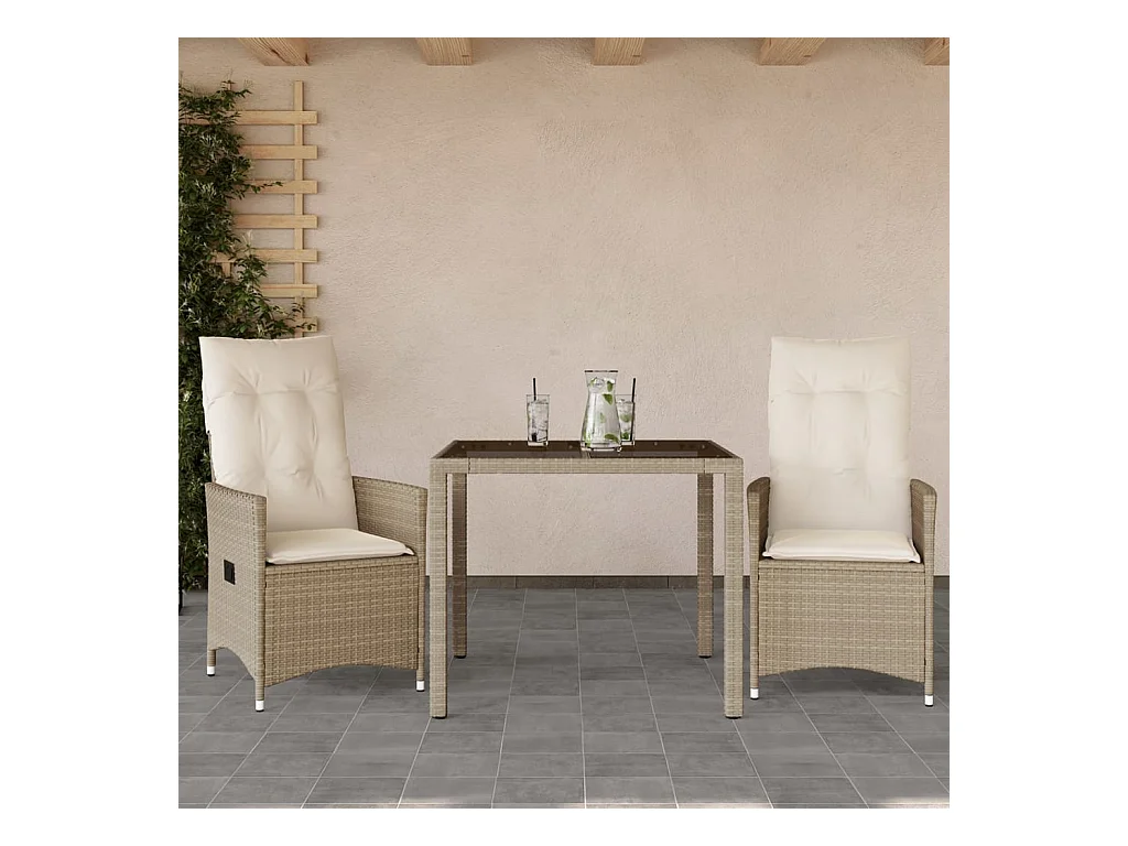 Ensemble de bistro 3 pcs avec coussins beige résine tressée FR63072