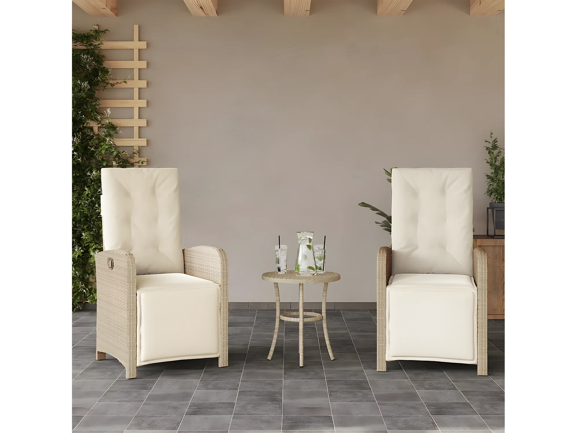 Ensemble de bistro 3 pcs avec coussins beige résine tressée GFDF24776