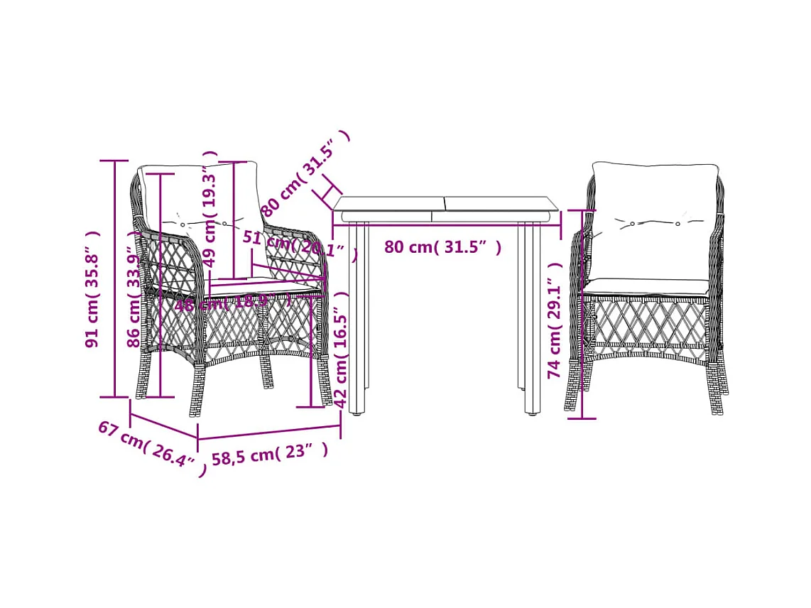 Ensemble de bistro 3 pcs avec coussins gris résine tressée