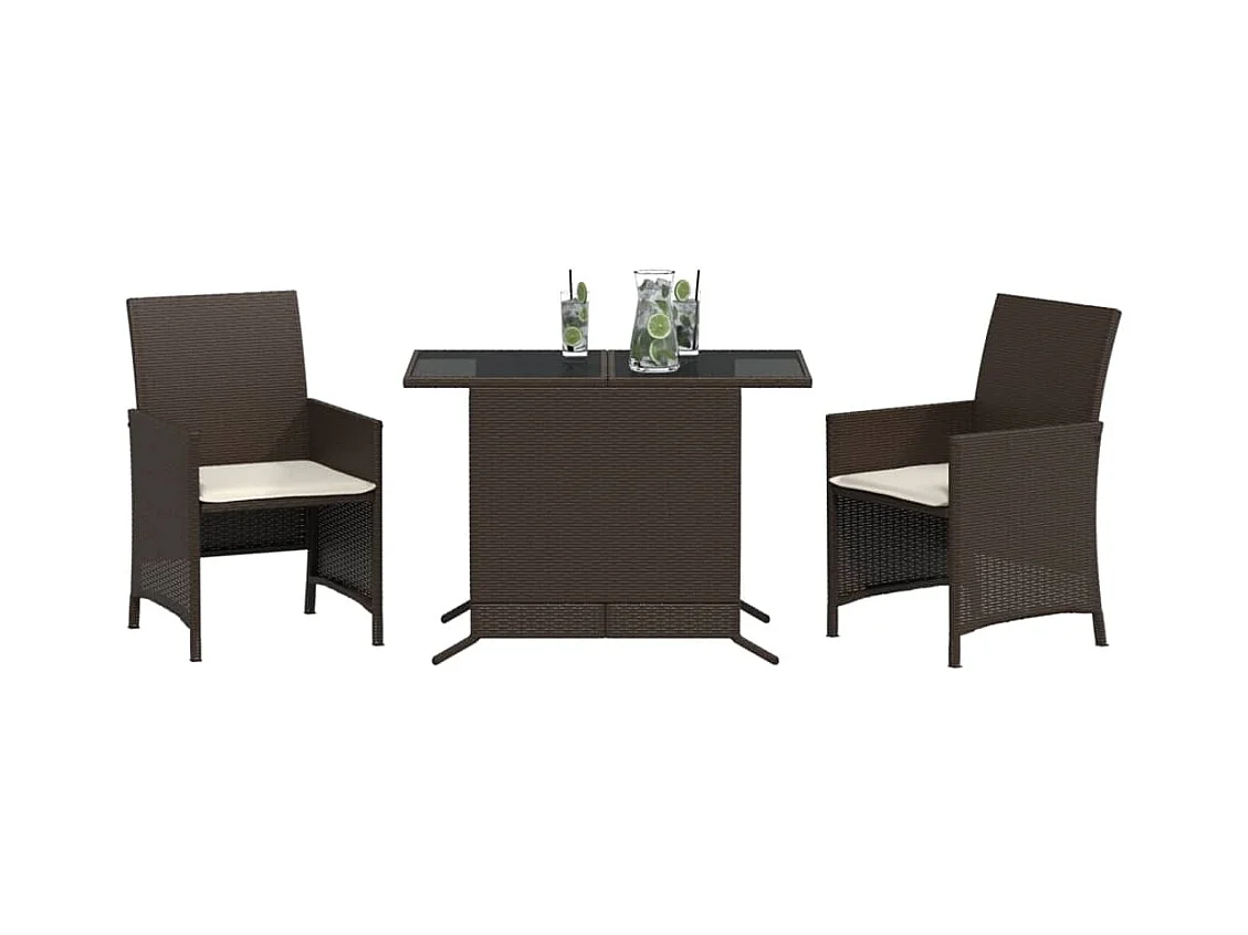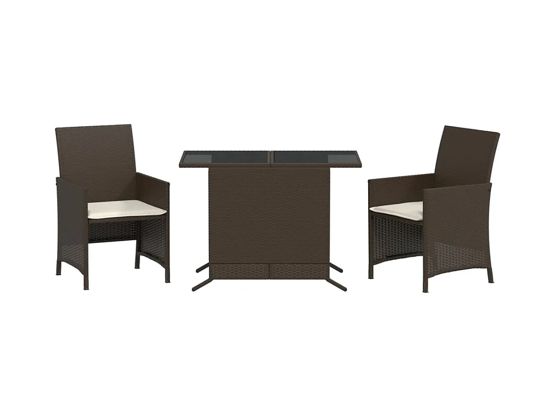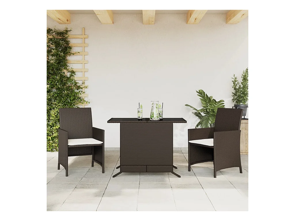 Ensemble de bistro 3 pcs avec coussins marron résine tressée