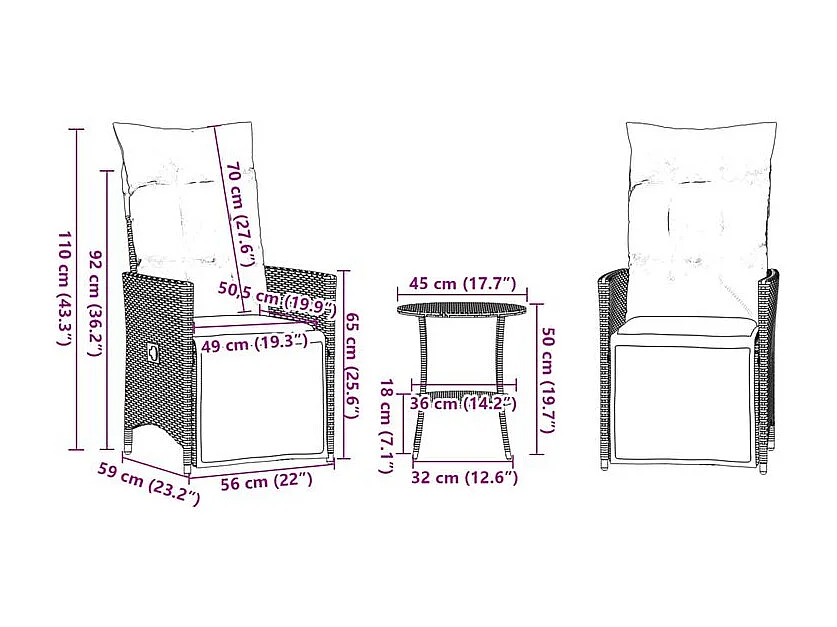 Ensemble de bistro 3 pcs avec coussins marron résine tressée