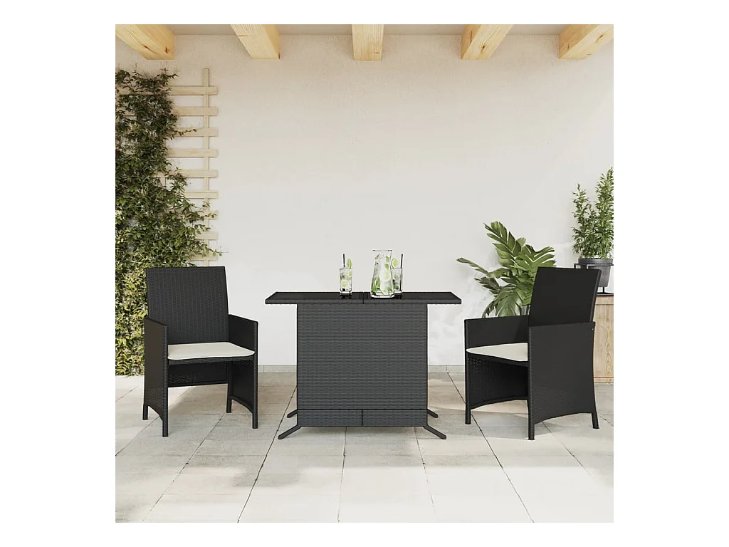 Ensemble de bistro 3 pcs avec coussins noir résine tressée