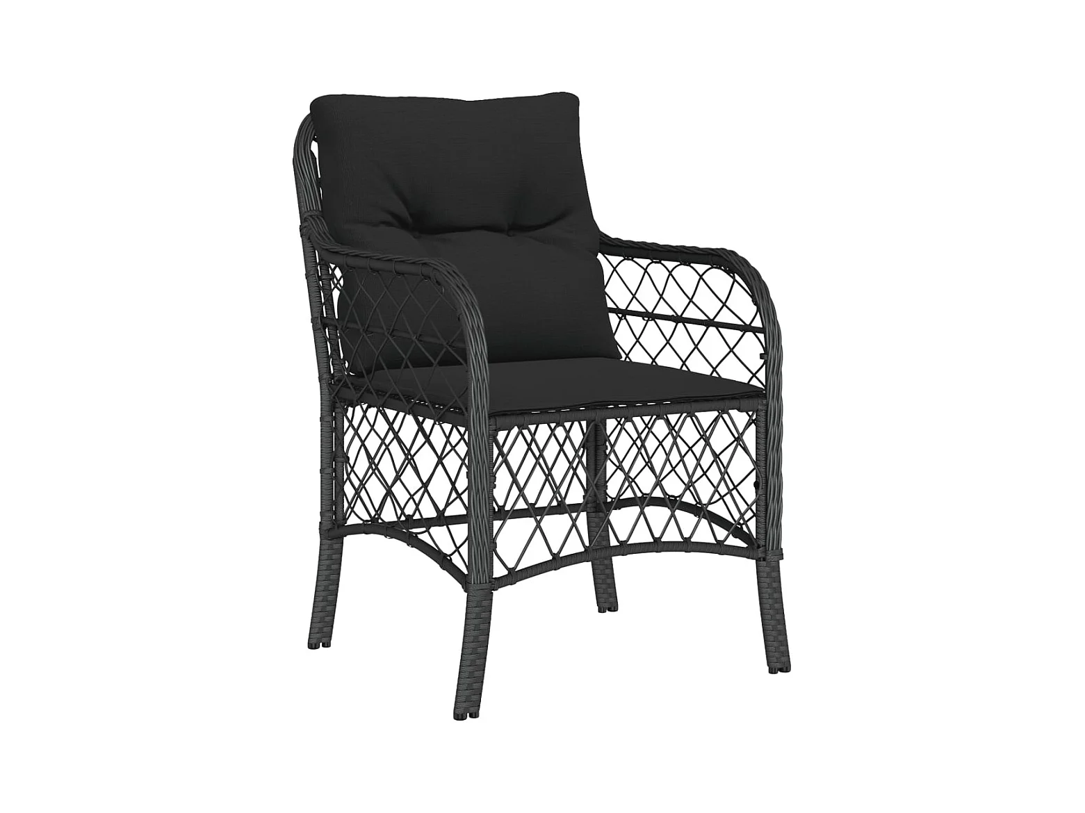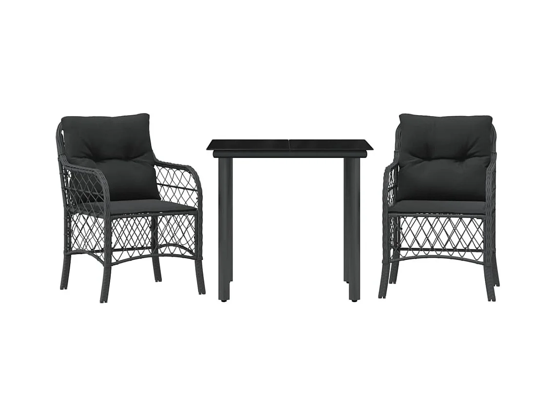 Ensemble de bistro 3 pcs avec coussins noir résine tressée