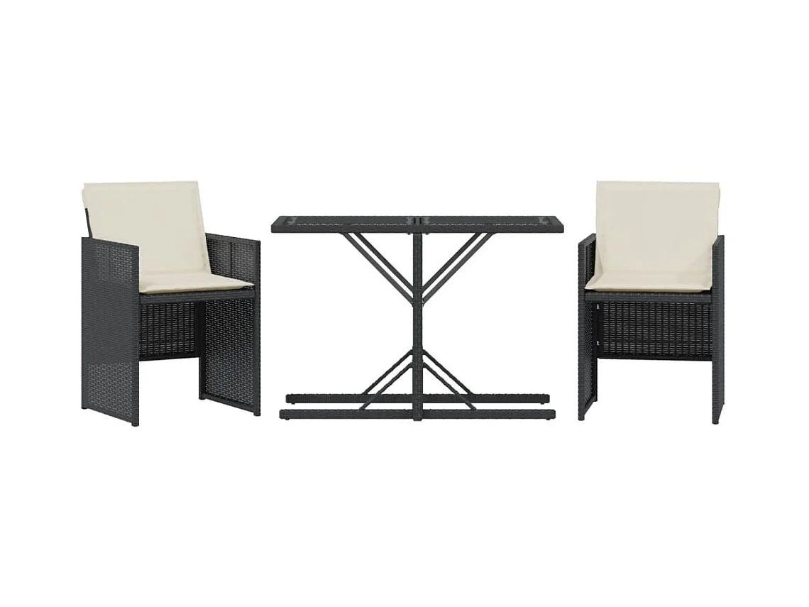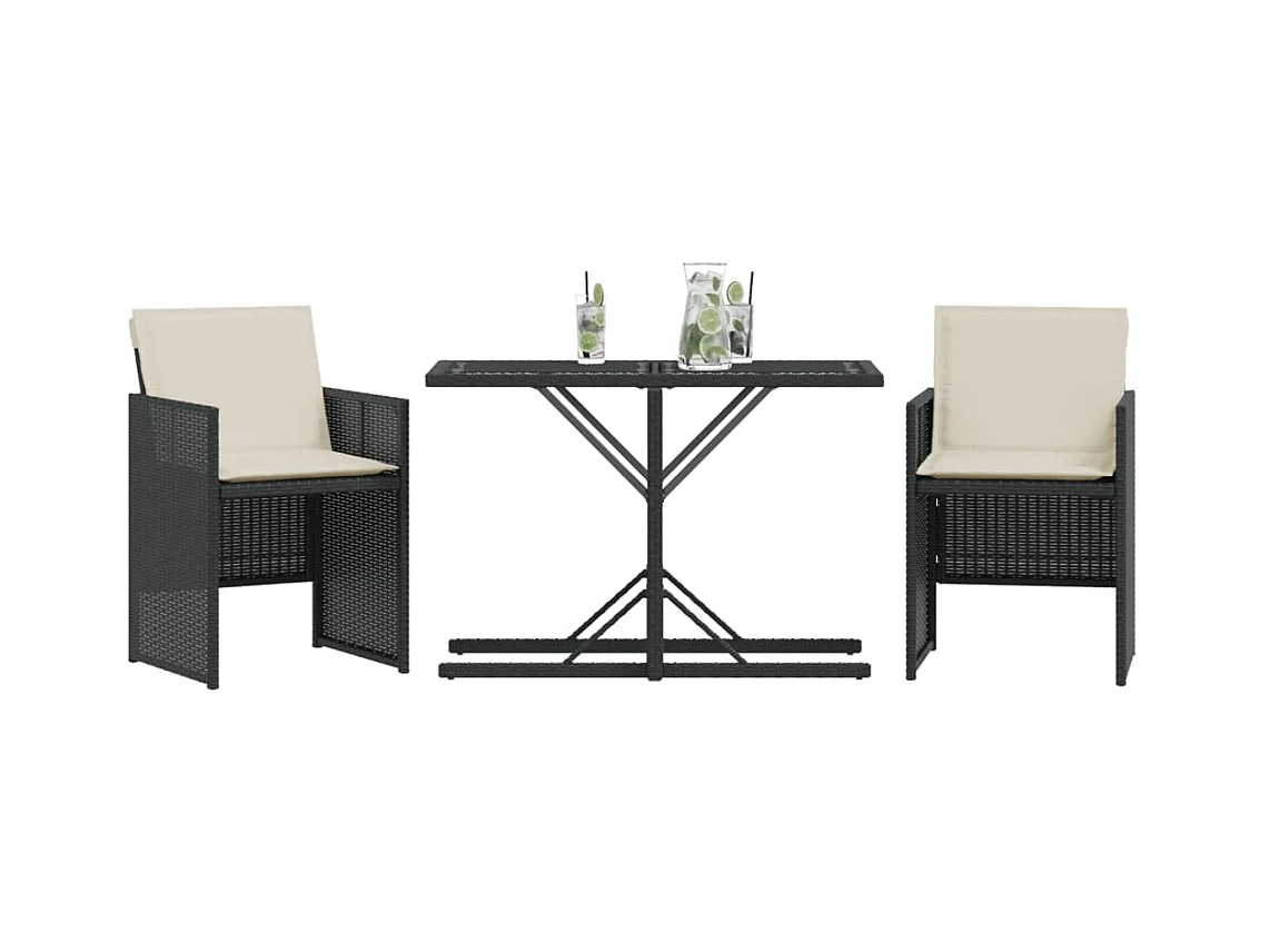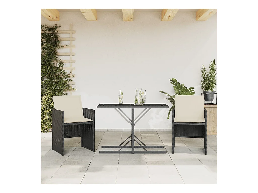 Ensemble de bistro 3 pcs avec coussins noir résine tressée
