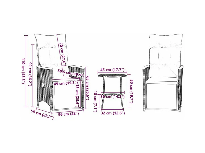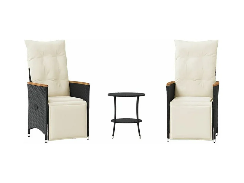 Ensemble de bistro 3 pcs avec coussins noir résine tressée