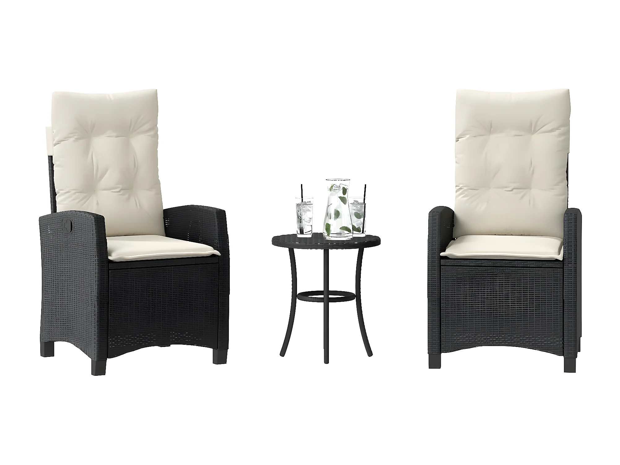 Ensemble de bistro 3 pcs avec coussins noir résine tressée GFDF80712