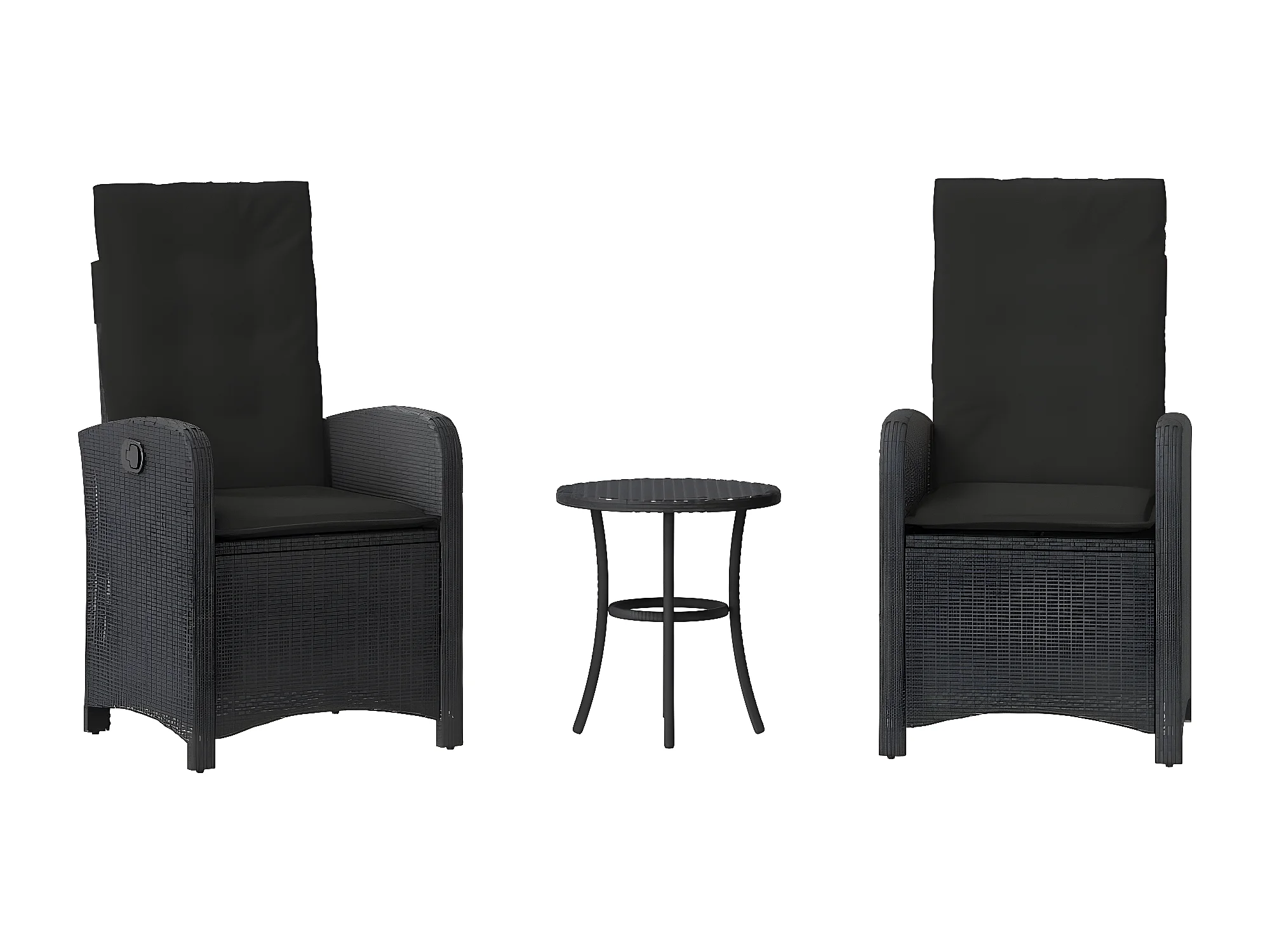 Ensemble de bistro 3 pcs avec coussins noir résine tressée GFDF90326