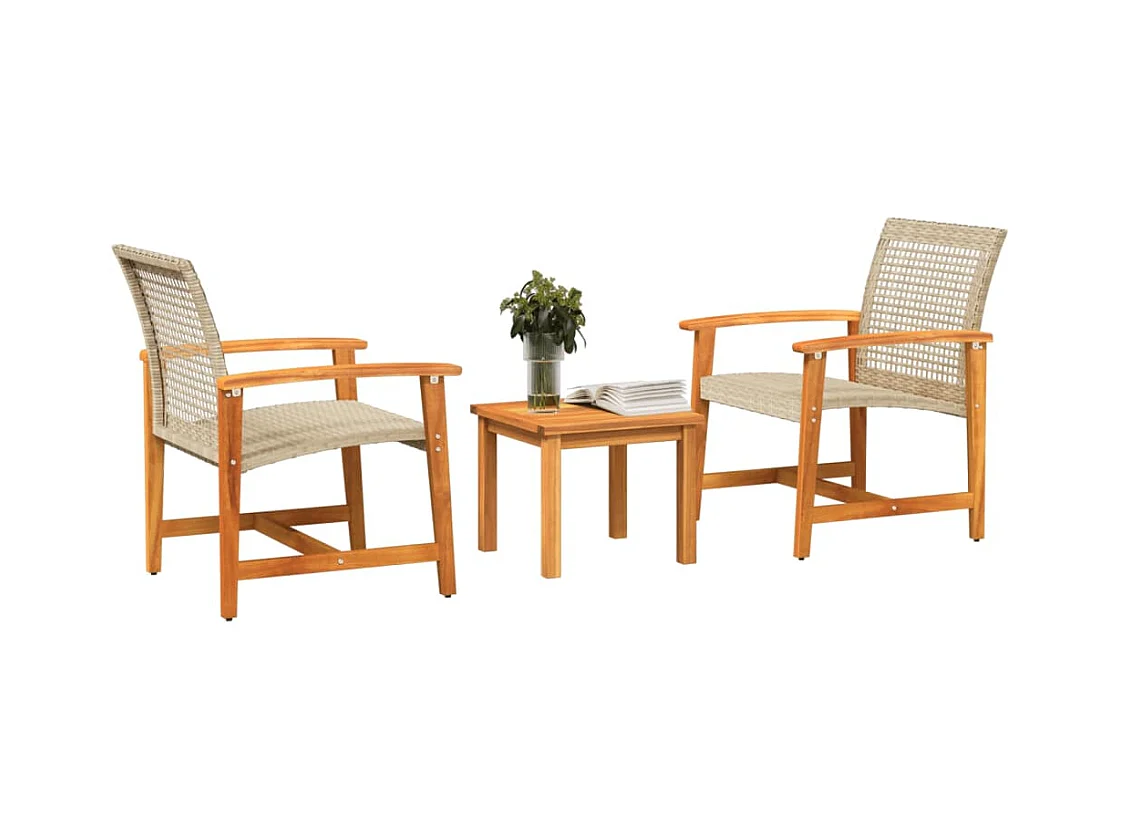 Ensemble de bistro 3 pcs beige résine tressée et bois d'acacia