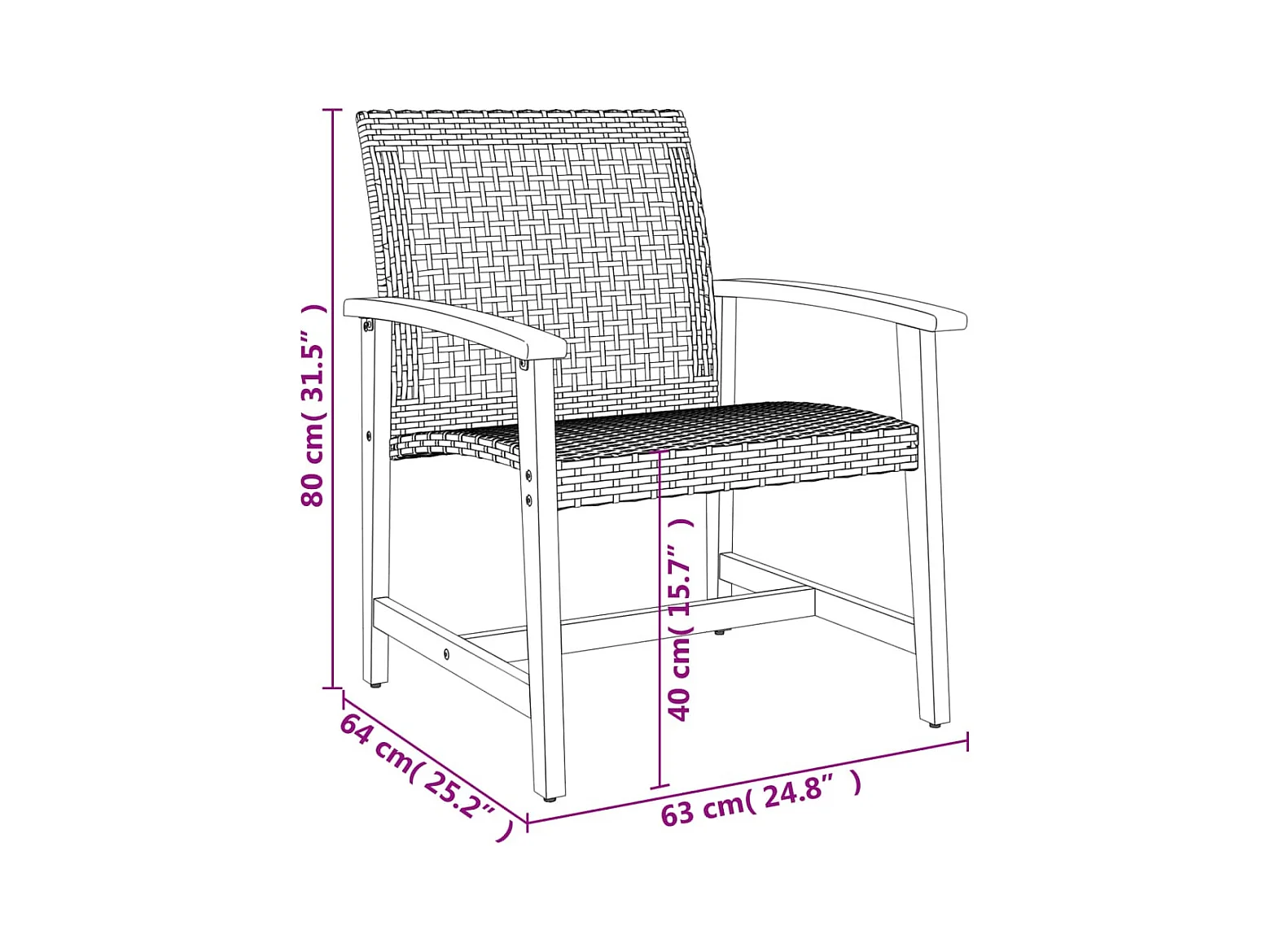 Chaises de jardin avec table à thé et coussins Acacia solide 15