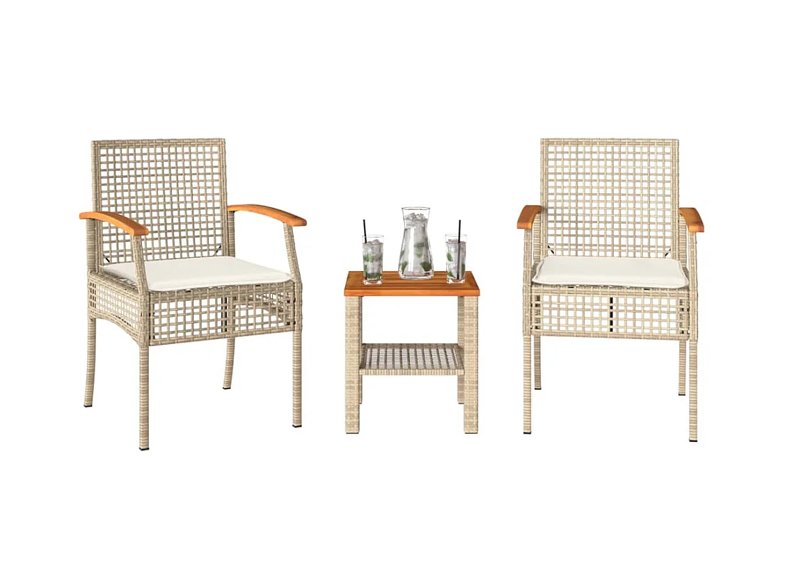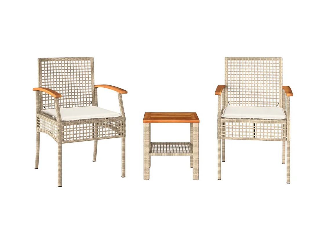 Ensemble de bistro 3 pcs coussins beige résine tressée acacia