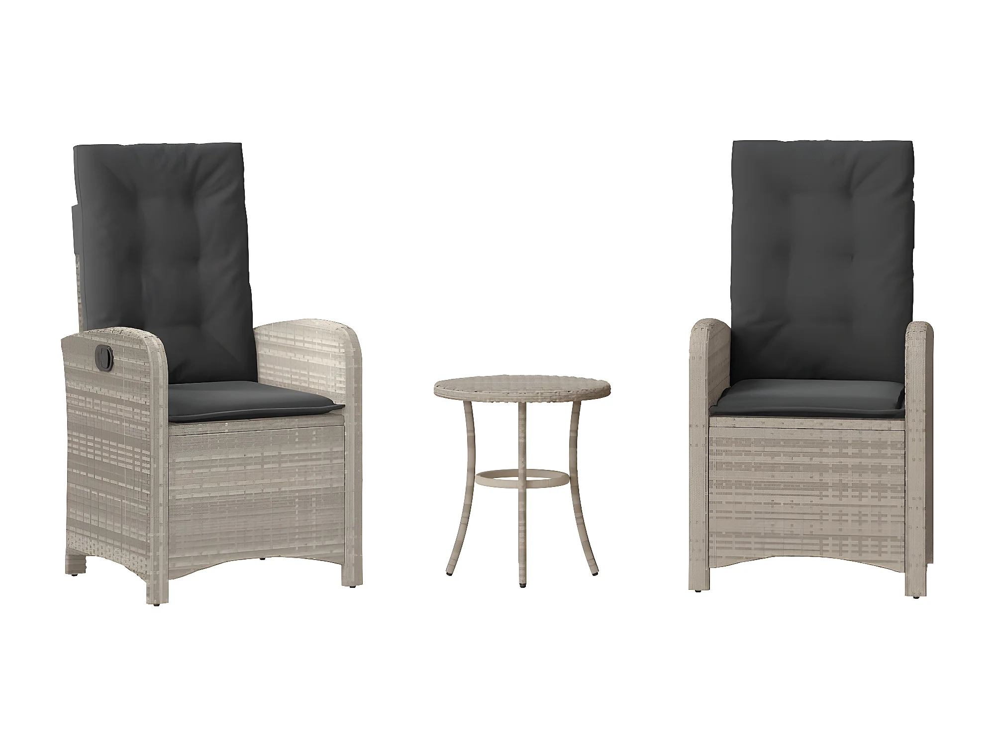 Ensemble de bistro 3 pcs et coussins gris clair résine tressée GFDF83617