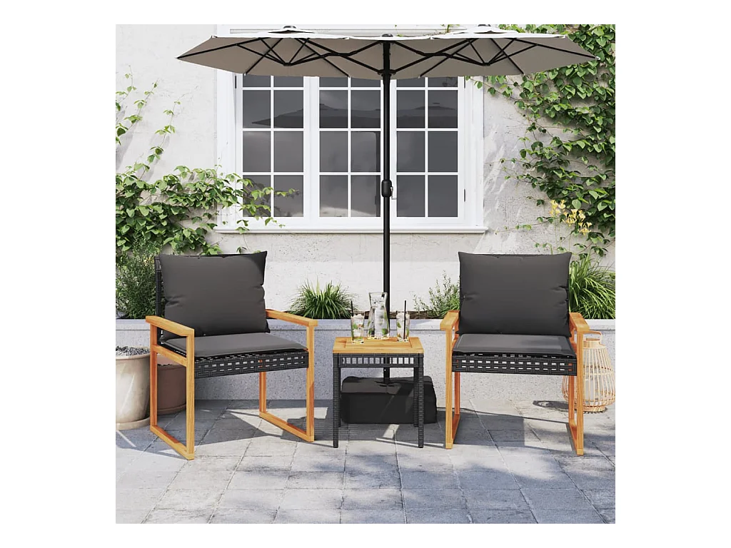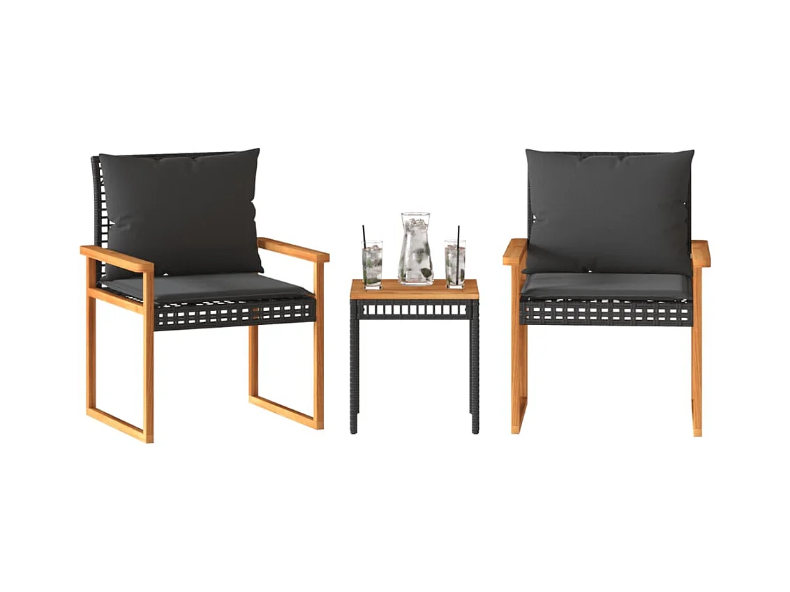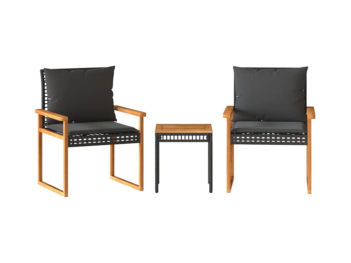 Ensemble de bistro 3 pcs et coussins noir résine tressée acacia FR94365