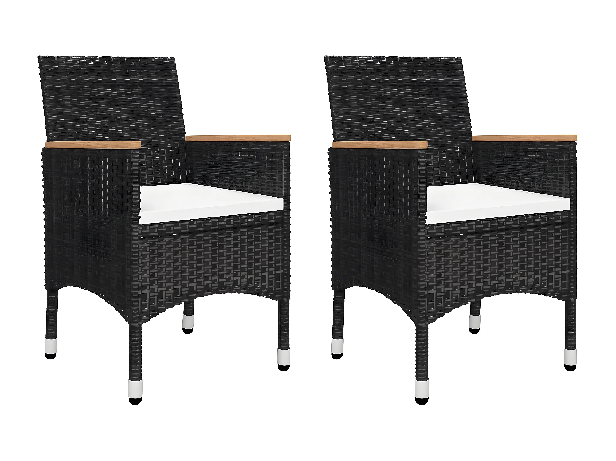 Ensemble de bistro 3 pcs Résine tressée et verre trempé Noir GFDF57438