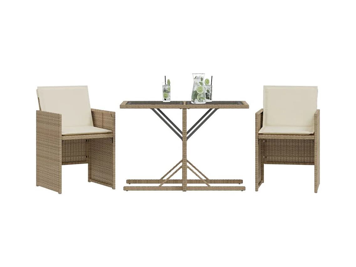 Ensemble de bistro 3 pièces avec coussins beige résine tressée