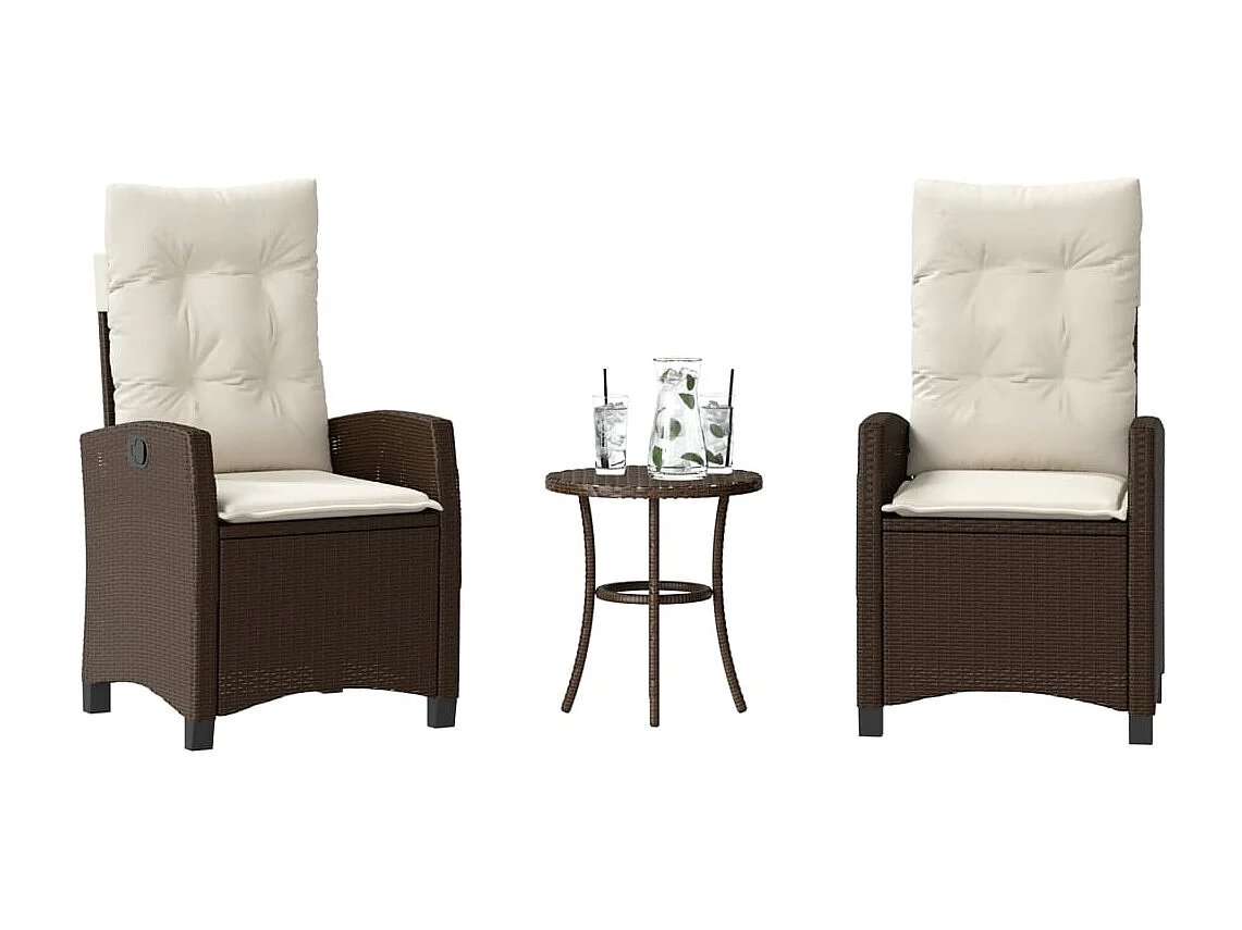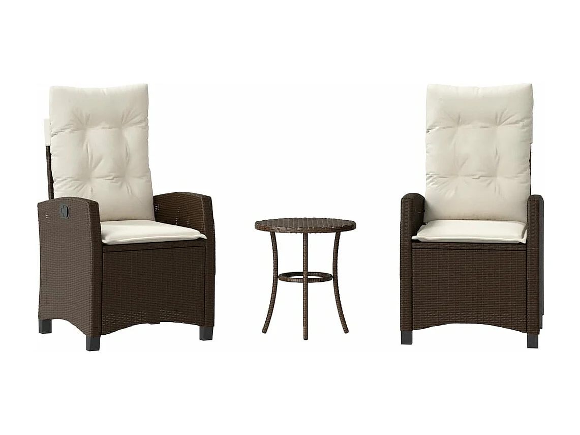 Ensemble de bistro 3 pièces avec coussins marron résine tressée