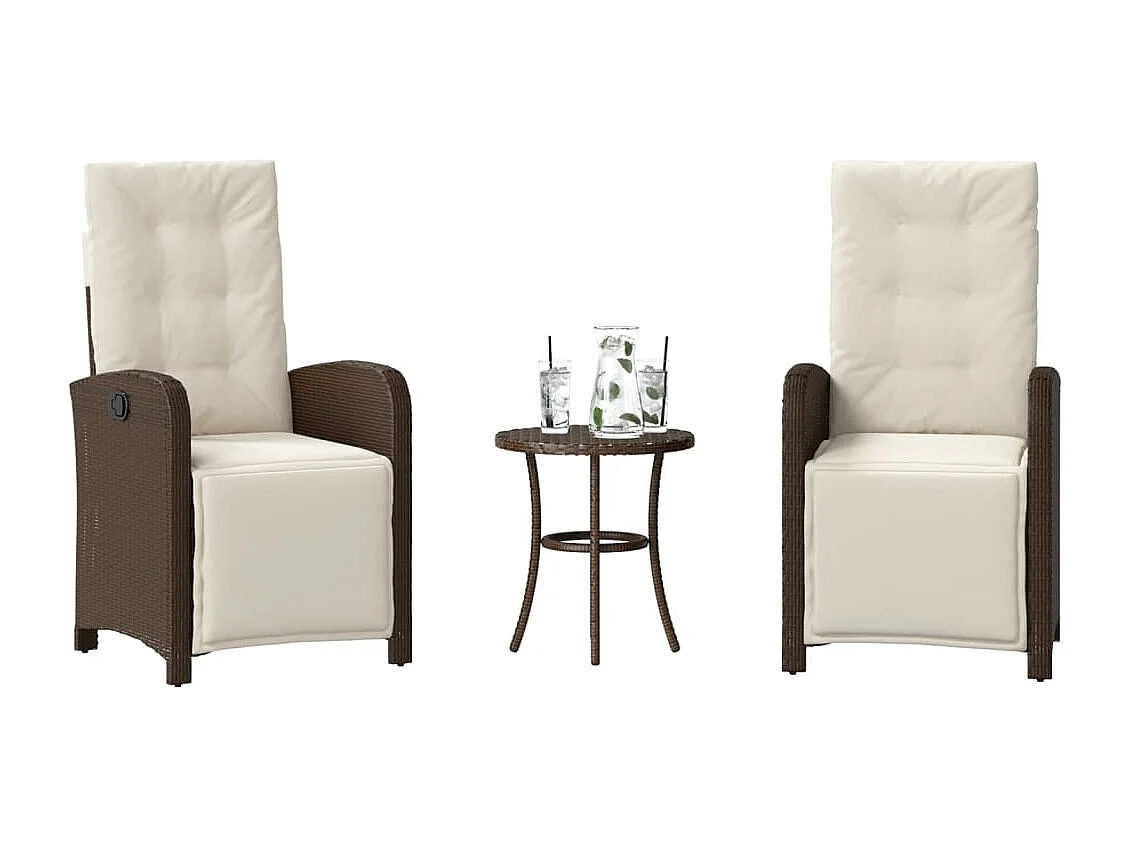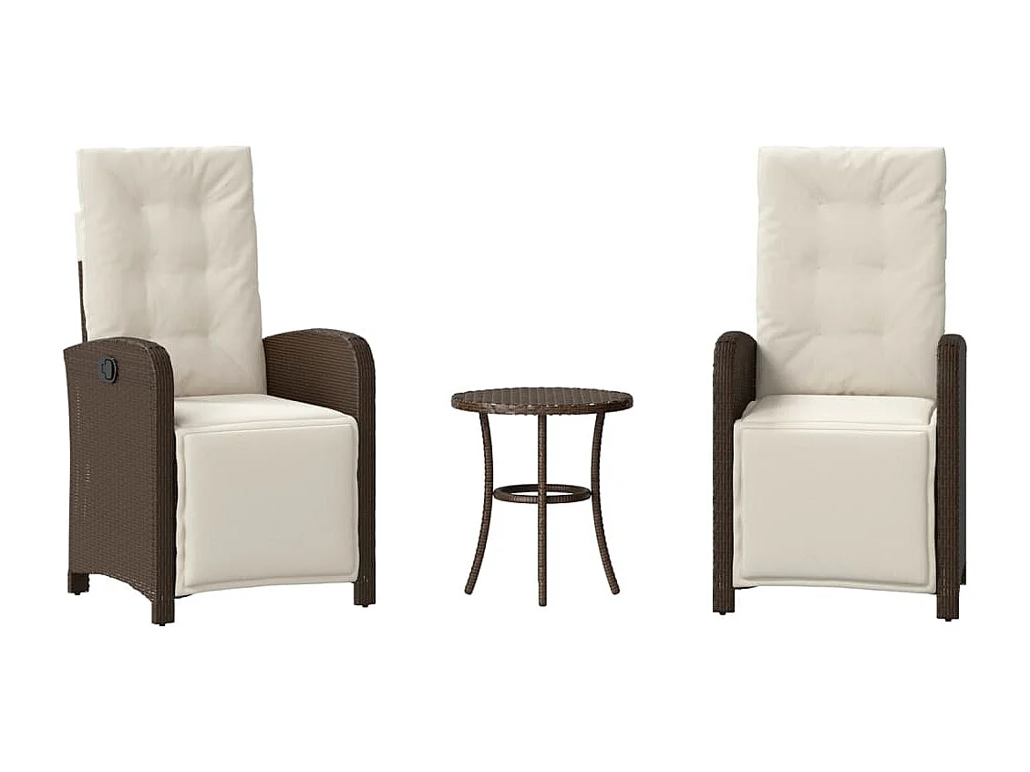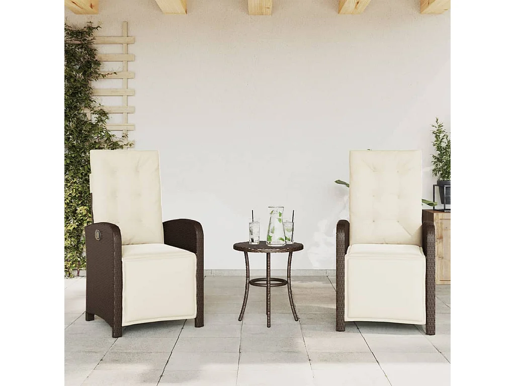 Ensemble de bistro 3 pièces avec coussins marron résine tressée
