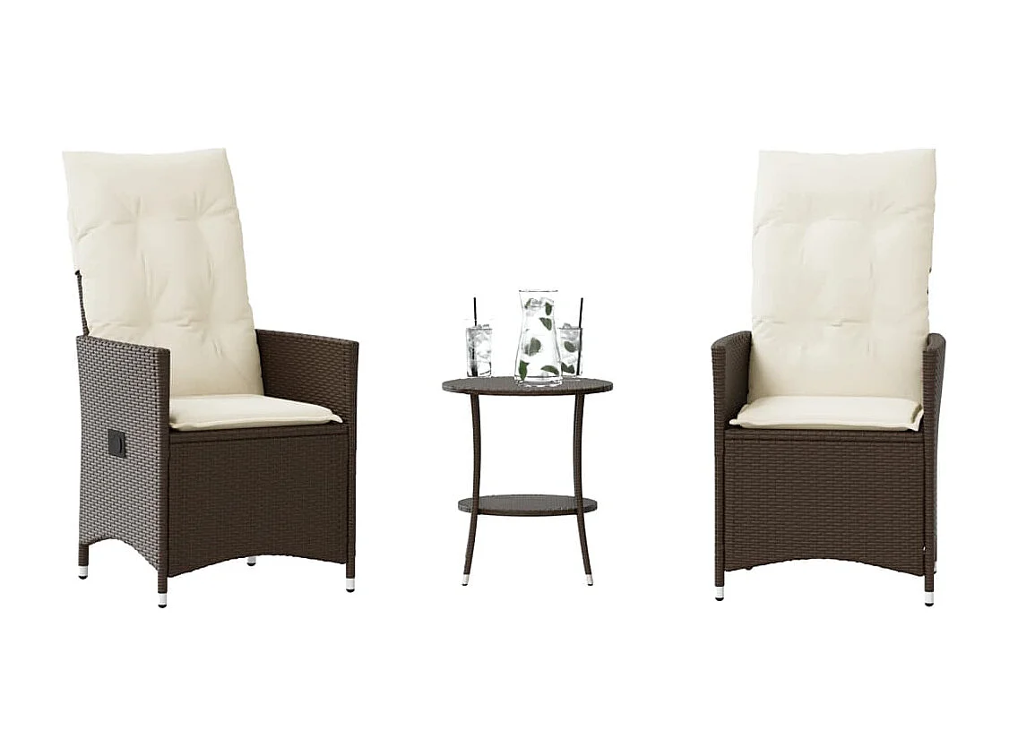 Ensemble de bistro 3 pièces avec coussins marron résine tressée